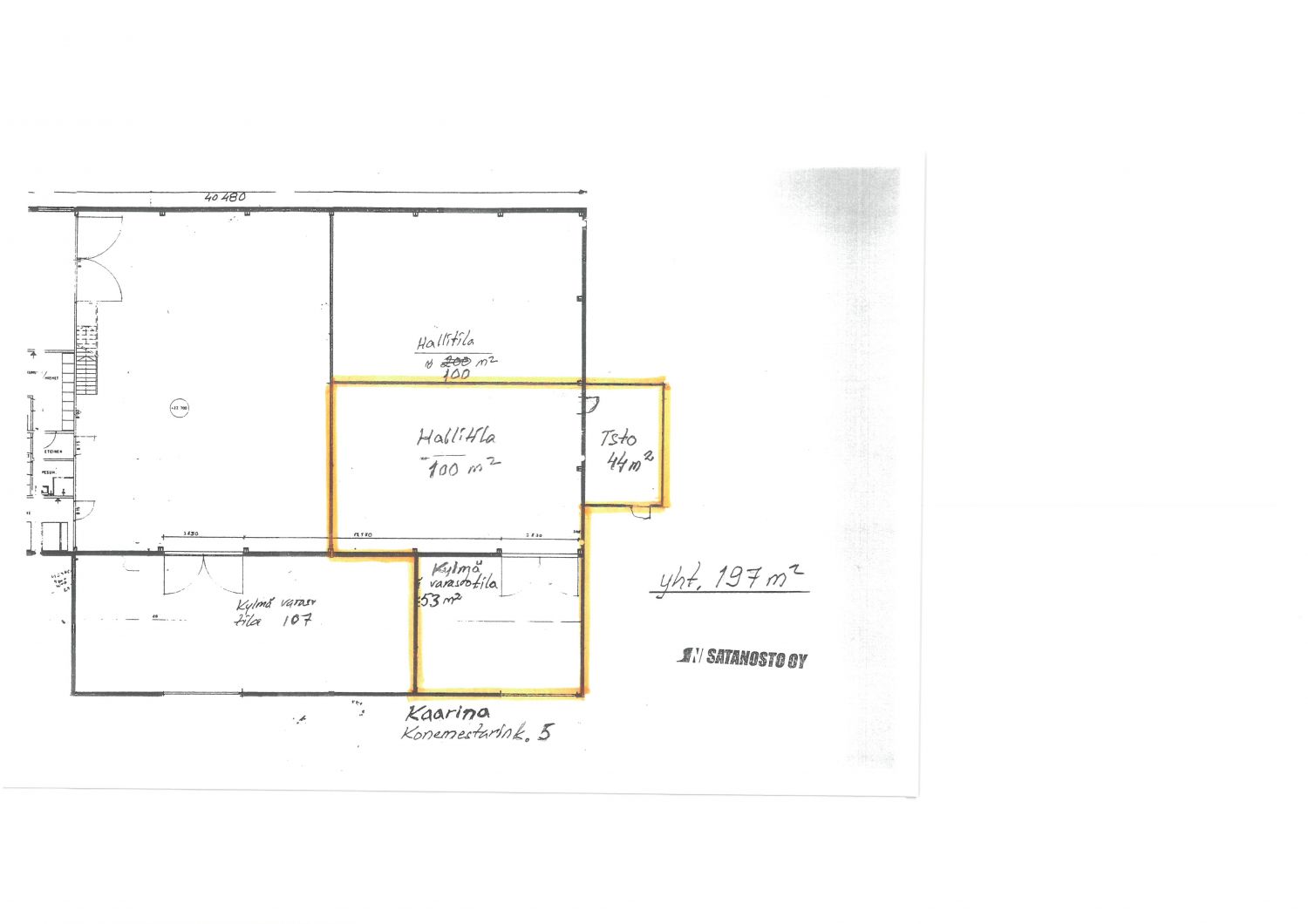 Hyvä kokonaisuus tuotanto+varasto+toimistotilaa. Lämmin hallitila 100 m2, lämmittämätön varastohalli 53 m3 ja toimisto omalla sisäänkäynnillä 20 m2.