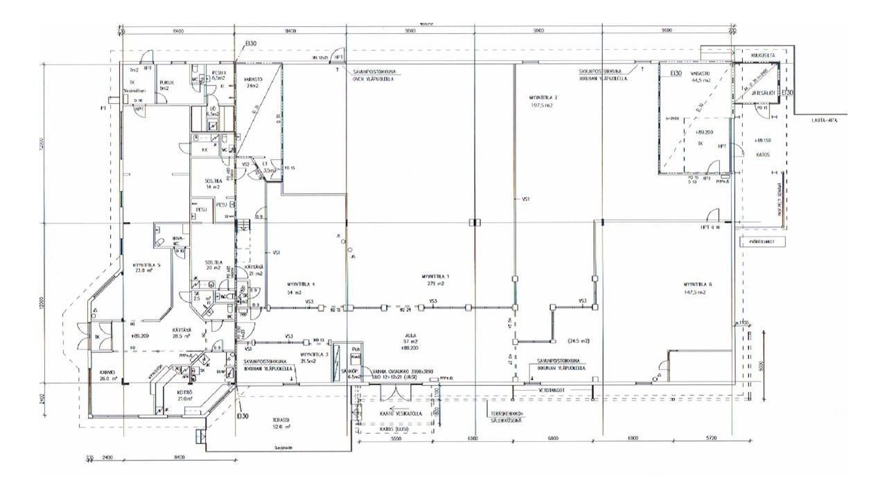 Soveltuu erinomaisesti liiketilaksi ja jopa pieneen tuotantoon. Osa tilan päädyssä olevista tiloista on vuokrattu.