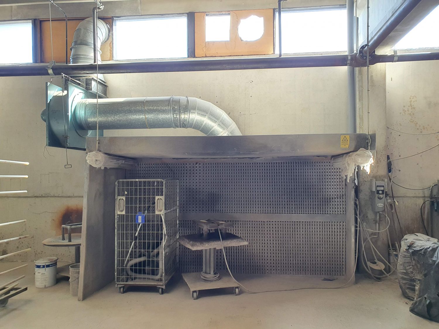 Sprinkleröity tila, mistä löytyy myös kohdepoistoja, paineilmajärjestelmä ja maalausalue.