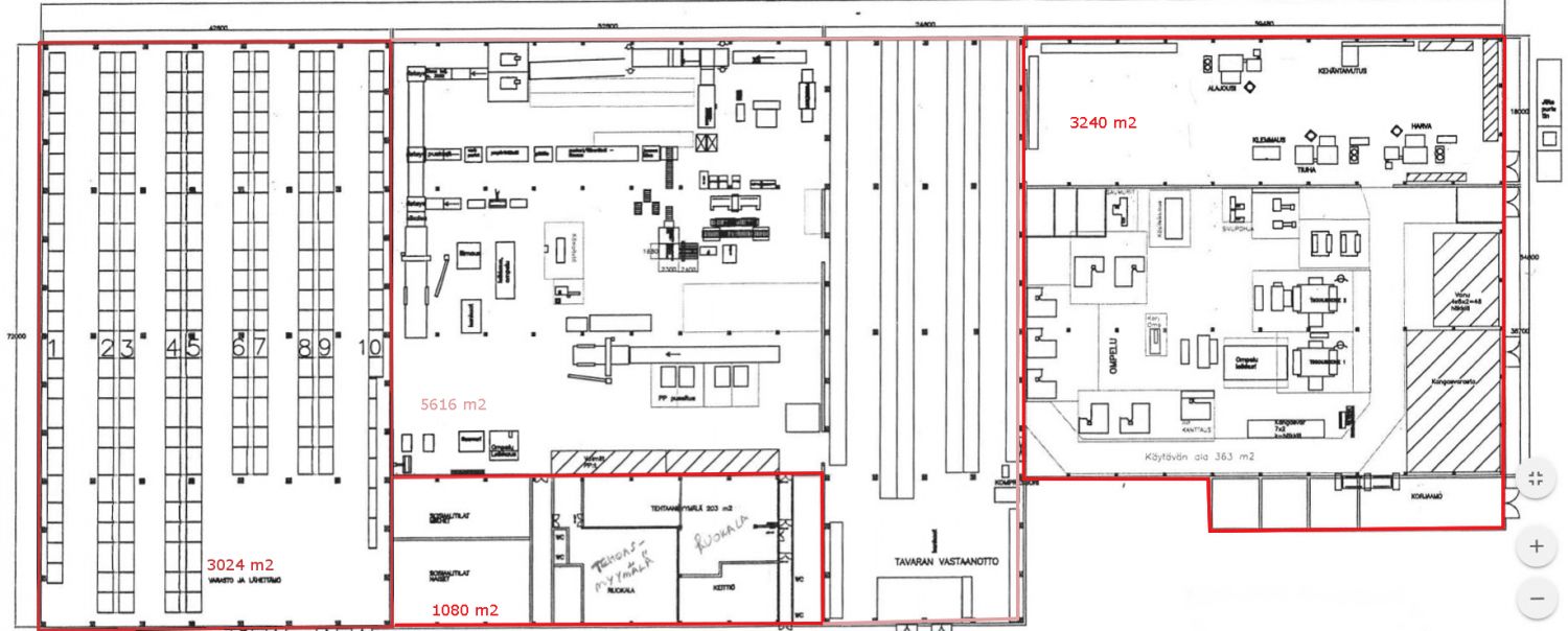 5.5 metriä korkea hallitila sekä n. 1500 m2 10 metriä korkeaa varastoa, jossa 2 lastaustaskua. Tila on osuus teollisuuskiinteistöstä Heinolasta, jossa monipuolista tuotantotilaa n. 7000 m2 ja varastotilaa n. 4900 m2. Lisäksi n. 1000 m2 toimisto-, sosiaali-, keittiö- ja ruokalatilaa. Mahdollista vuokrata myös toimistotilaa varastojen yhteyteen. Kiinteistö on rakennettu 1984 ja se sijaitsee omalla tontilla. Varastojen korkeus vaihtelee aina 10 metriin asti. Valtatie E75 on matkaa 2.8 kilometriä. Tontin koko 62 337 m2.
