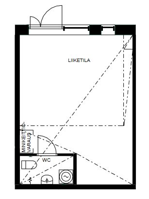 Tämä kompakti tila sijaitsee asuinrakennuksen katutasossa. Tilassa wc ja mahdollisuus minikeittiöön. Keskeisen sijaintinsa vuoksi tila soveltuu erinomaisesti niin liiketilaksi kuin esim. isännöintitoimistoksikin.