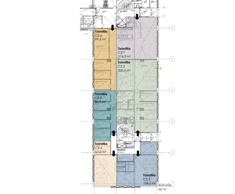Vuokrataan eri kokoisia toimistoratkaisuja toisesta kerroksesta Jyväskylän keskustasta Cygnaeuksenkadulta. Toimistotilat ovat n. 61 - 181,5 m2-kokoisia sekä remontoituja ja yleisilmeeltään siistejä. Tila voidaan vuokrata kokonaisuutena tai se voidaan pilkkoa pienempiin osiin. Tila muodostuu eri kokoisista toimistohuoneista, neuvottelutiloista, avotilasta, hiljaisentyöntiloista, keittiö- ja taukotilasta sekä wc-tiloista.