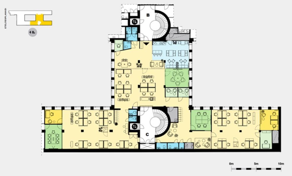 Vuokrattavana erinomaiselta paikalta Esplanadin puiston kupeesta moderni toimistotila. Tilassa on useita työalueita ja neuvottelutiloja. Kolmisakarainen tila mahdollistaa monenlaisen käytön ja neljä erillistä sisäänkäyntiä tarjoaa mahdollisuuden vieraiden ohjaamisen eri sisäänkäynnille. Tila sijaitsee 2. kerroksessa ja vapautuu heinäkuun alussa. Kaikki keskustan palvelut vieressä.