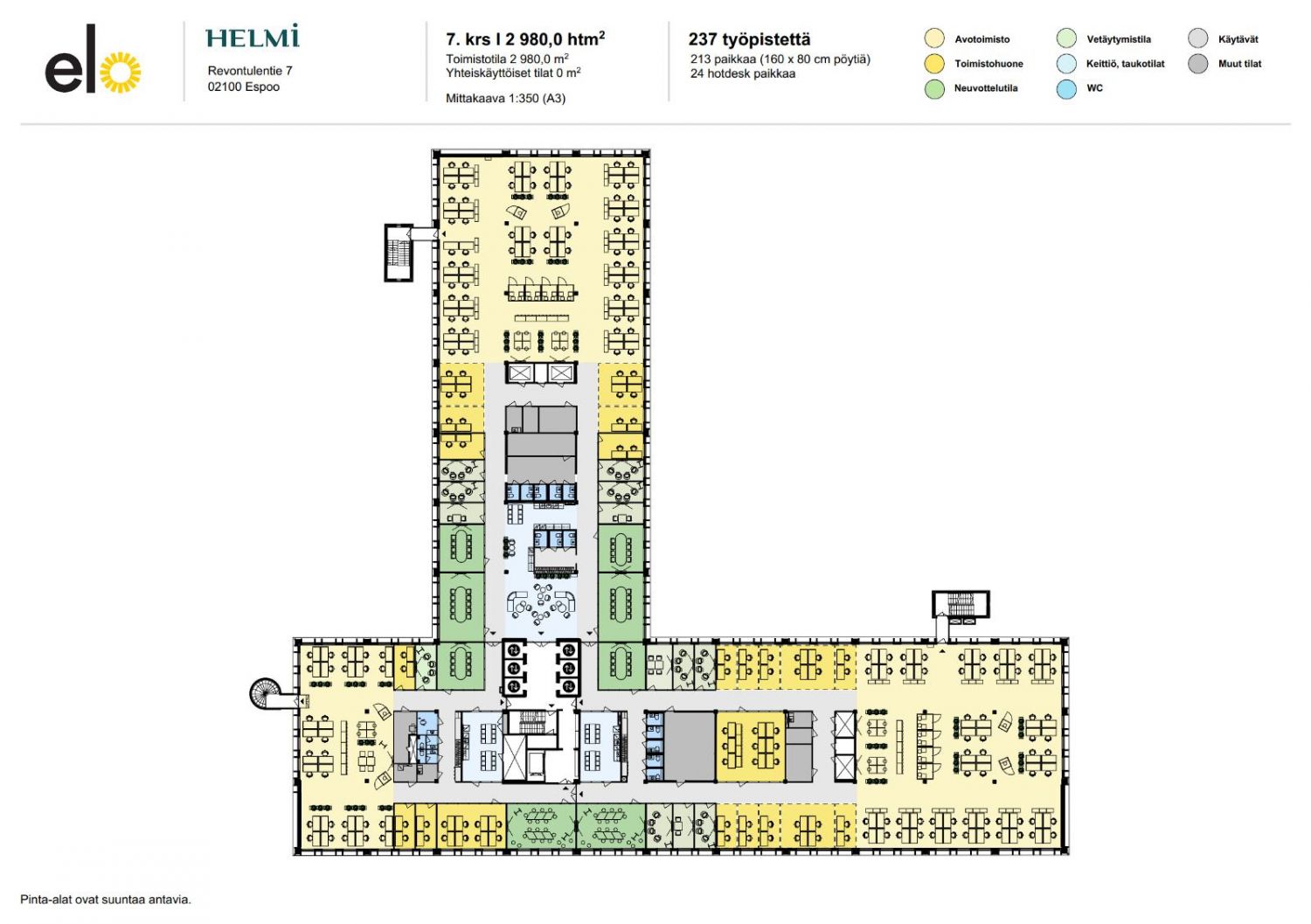 Vuokrataan Espoon Tapiolasta seitsemännen kerroksen kokonaan kattava 2 980 m² toimistotila