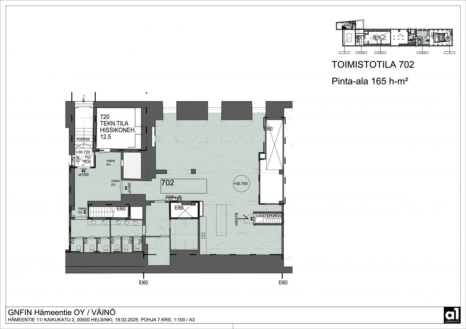 Vuokrataan Helsingin Sörnäisistä seitsemännen kerroksen 165,5 m² saneerattu toimistotila.