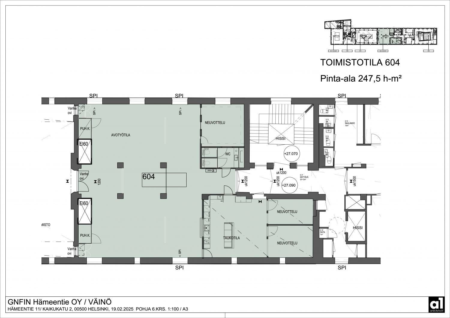 Vuokrataan Helsingin Sörnäisistä kuudennen kerroksen 247,5 m² saneerattu toimistotila.
