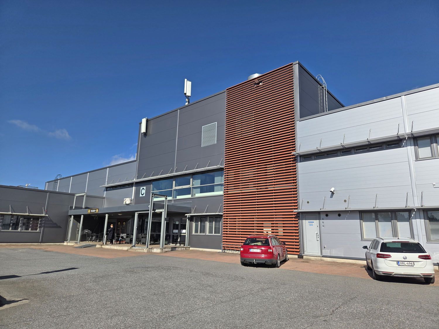 Pihassa autopaikkoja sekä asiakkaille että henkilökunnalle.