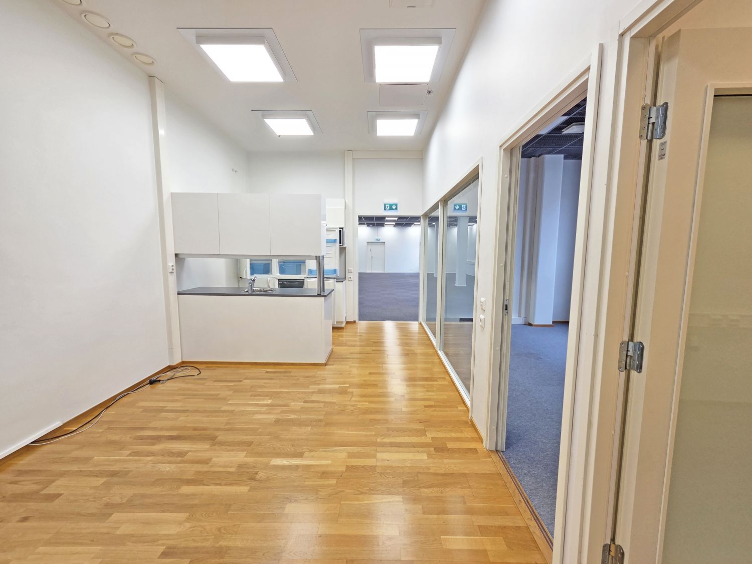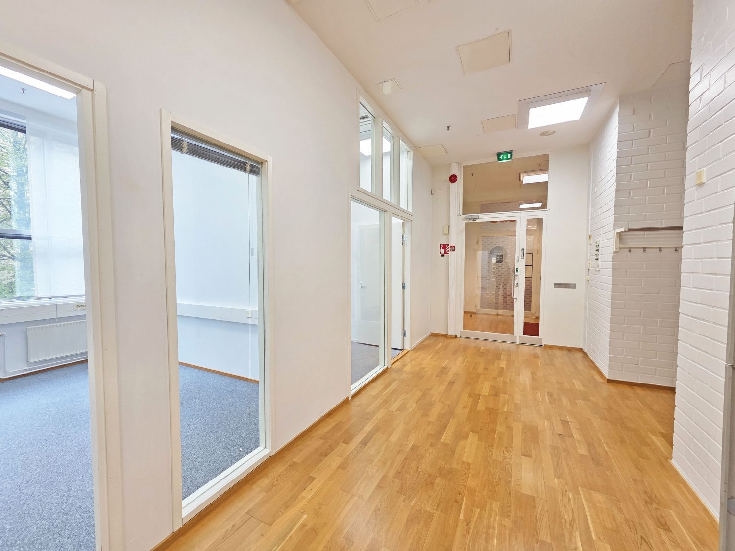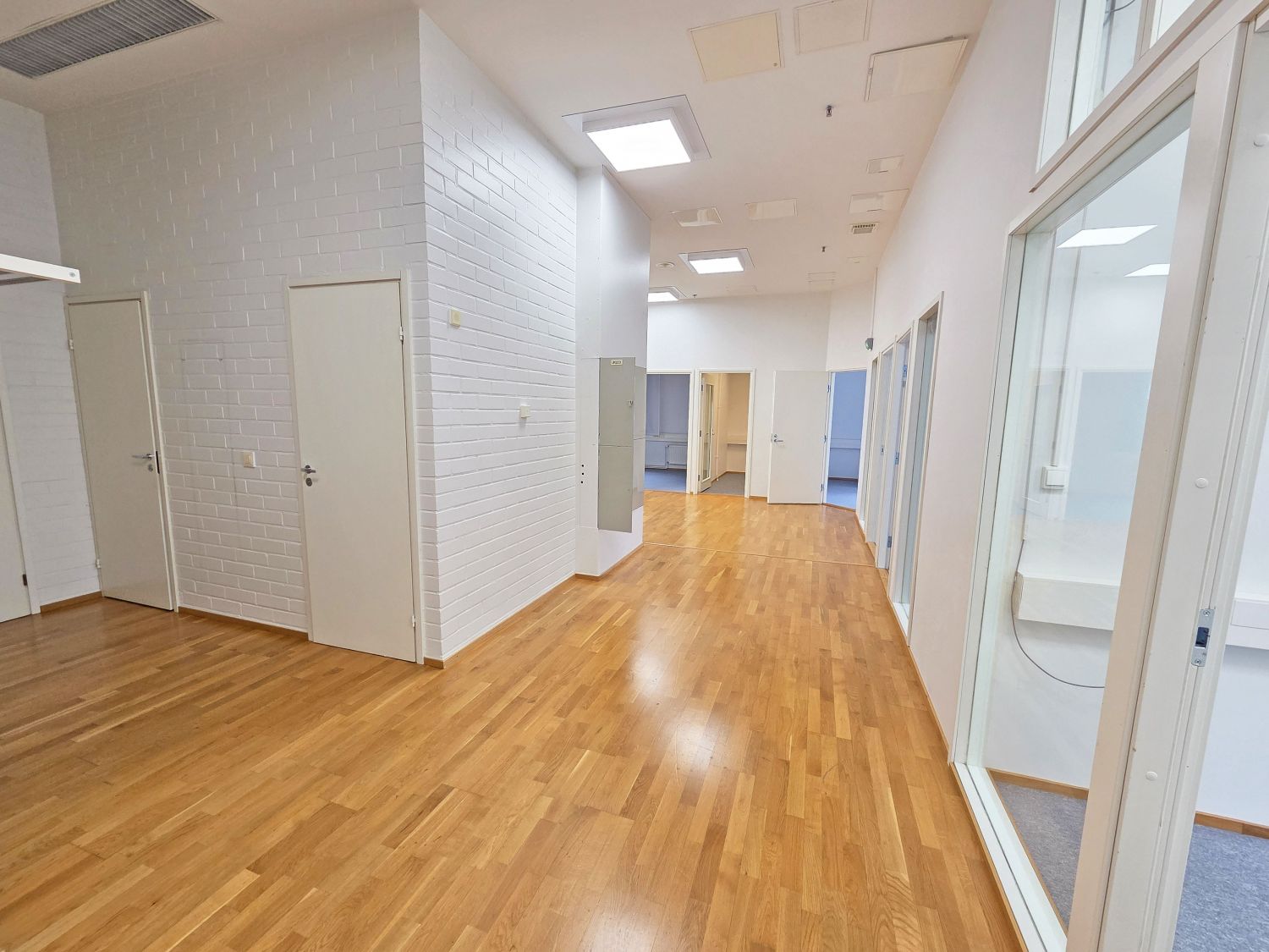 2. kerroksen valoisa toimistotila, jossa 4 toimistohuonetta, neukkari sekä avotilaa. Toimistotiloissa lattiat tekstiilipalamattoa ja aulatiloissa parkettia.