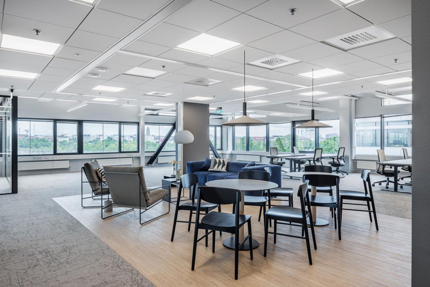 Nauti upeista näkymistä Töölönlahdenkadulle, Ratapihalle ja viihtyisälle sisäpihan terassille. Tämä tila tarjoaa erinomaiset puitteet inspiroivalle ja viihtyisälle työympäristölle.