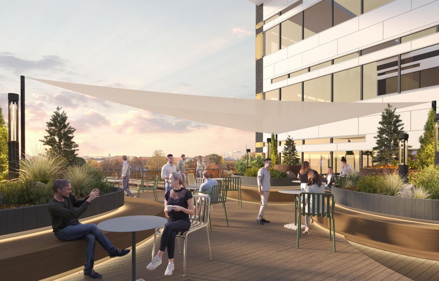 Vehreä terassi tarjoaa inspiroivan ympäristön työntekoon tai rentoutumiseen. Kellarista löydät pyöräparkin, suihkutilat ja pukukaapit, jotka tekevät työmatkapyöräilystä vaivatonta. Pyöräsi säilytys on turvallista, sillä Kaisatunnelista on suora ajo pyöräparkkiin. Lisäksi Elielin pysäköinnistä on sisäyhteys kiinteistöön.