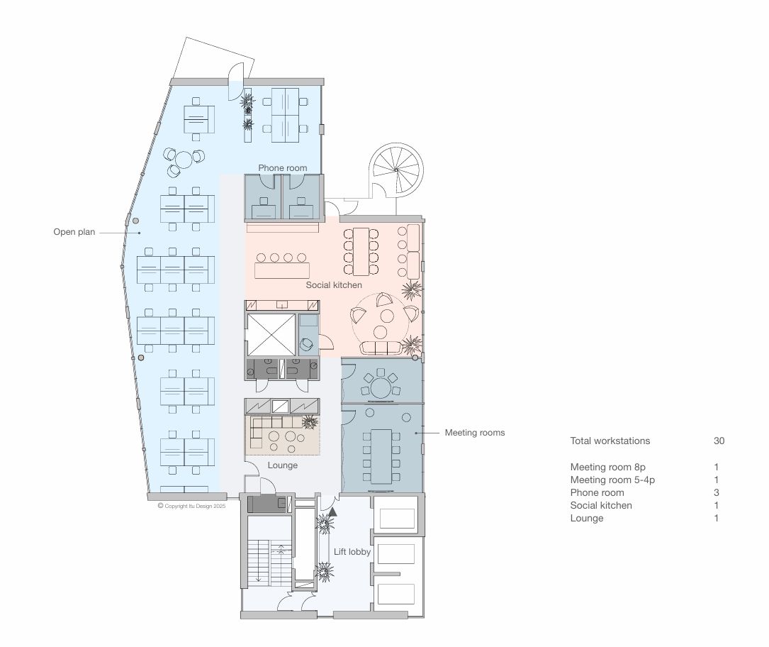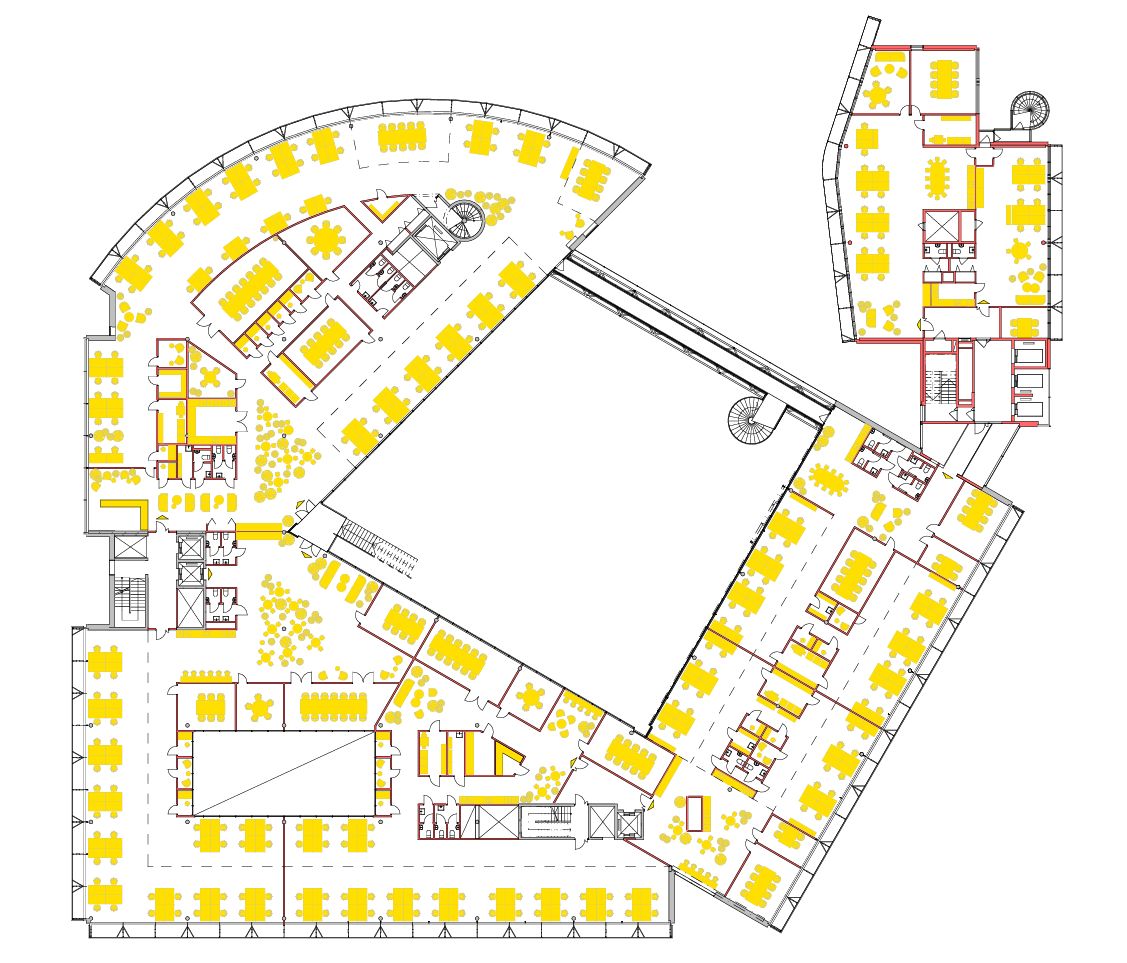 Muuntojoustavat tilat suunnitellaan yrityskohtaisesti. Tornin tiloista avautuvat huikeat näkymät yli Ruoholahden kattojen.