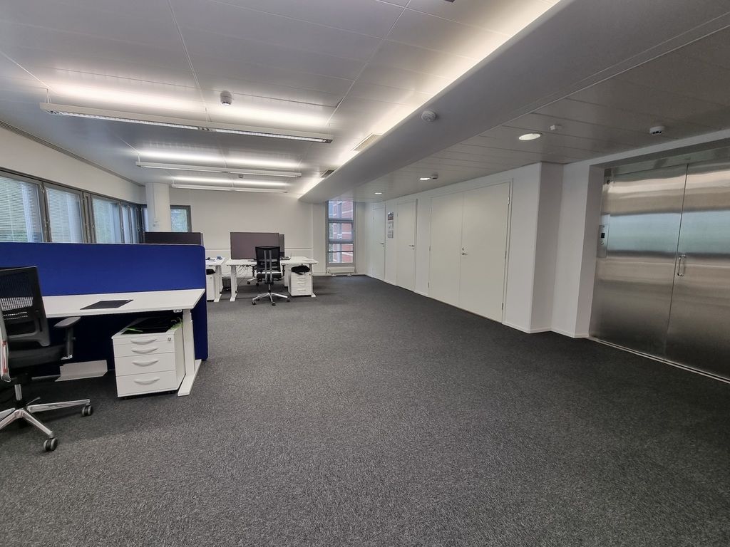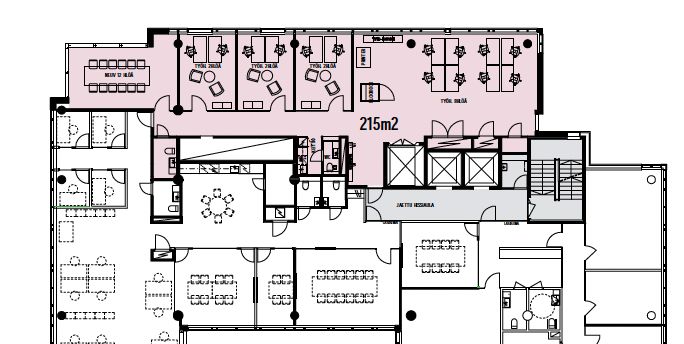 Tämä hyväkuntoinen 215 m² toimistotila sijaitsee kiinteistön 3. kerroksessa. Toimistossa on huoneita, avotilaa sekä omat keittiö- ja wc-tilat.
