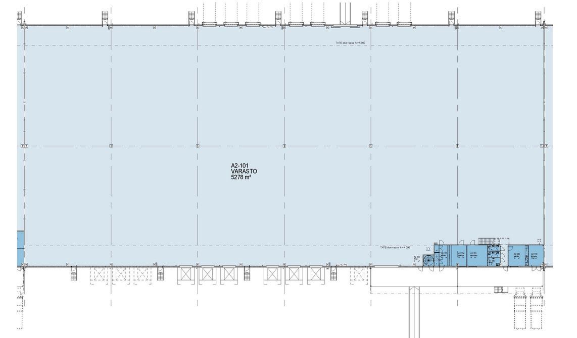 Vuokrataan toimivaa ja tehokasta 6 metriä korkeaa varastotilaa. Varaston purkaus- ja lastaustilat on suunniteltu kontti- ja ajoneuvoliikenteen tarpeita varten. Tilassa on 13 lastaustaskua ja yksi lastauslaituri nosto-ovella. Varastotilan, pinta-alaltaan 5 278 m2, yhteydessä on toimisto- ja sosiaalitilat, yhteensä 198 m2. Huoneisto A2. Viereiseltä tontilta on mahdollista vuokrata traileripaikka.