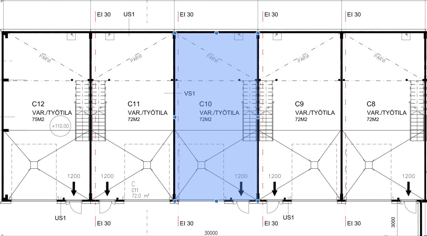 - Tilaan erillinen käyntiovi sekä tavaraliikennettä varten korkea sähkökäyttöinen nosto-ovi (korkeus 4 m)