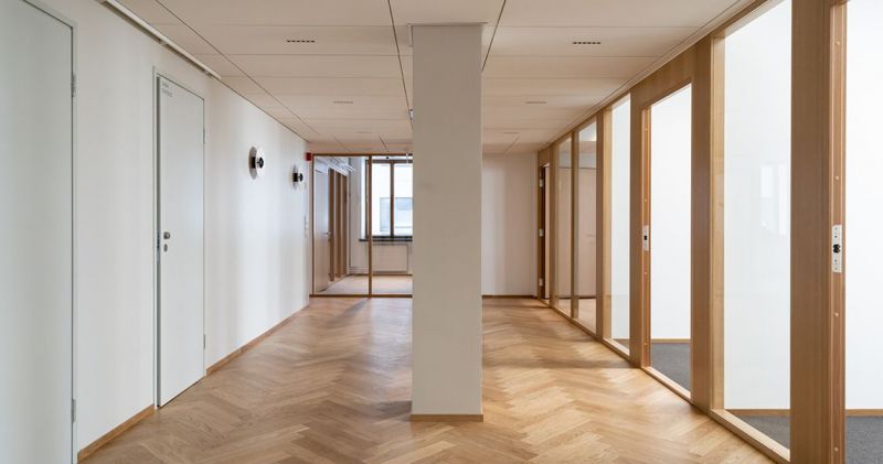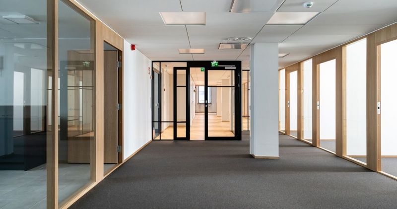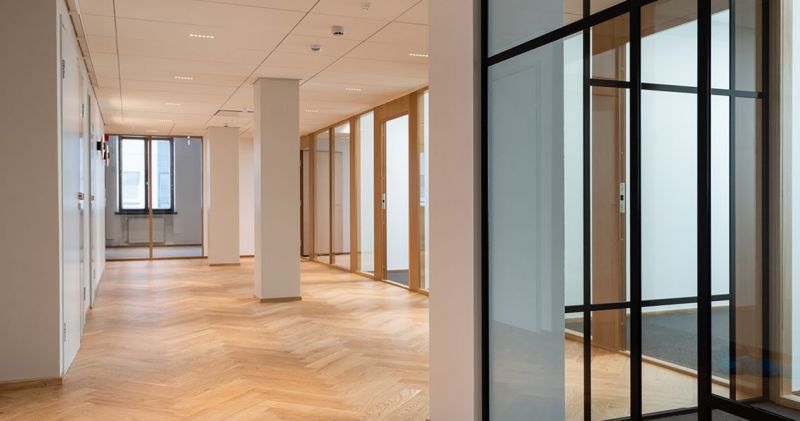 Valoisa ja edustava monitilatoimisto 3. kerroksessa.
