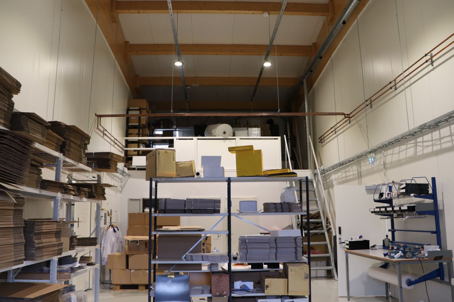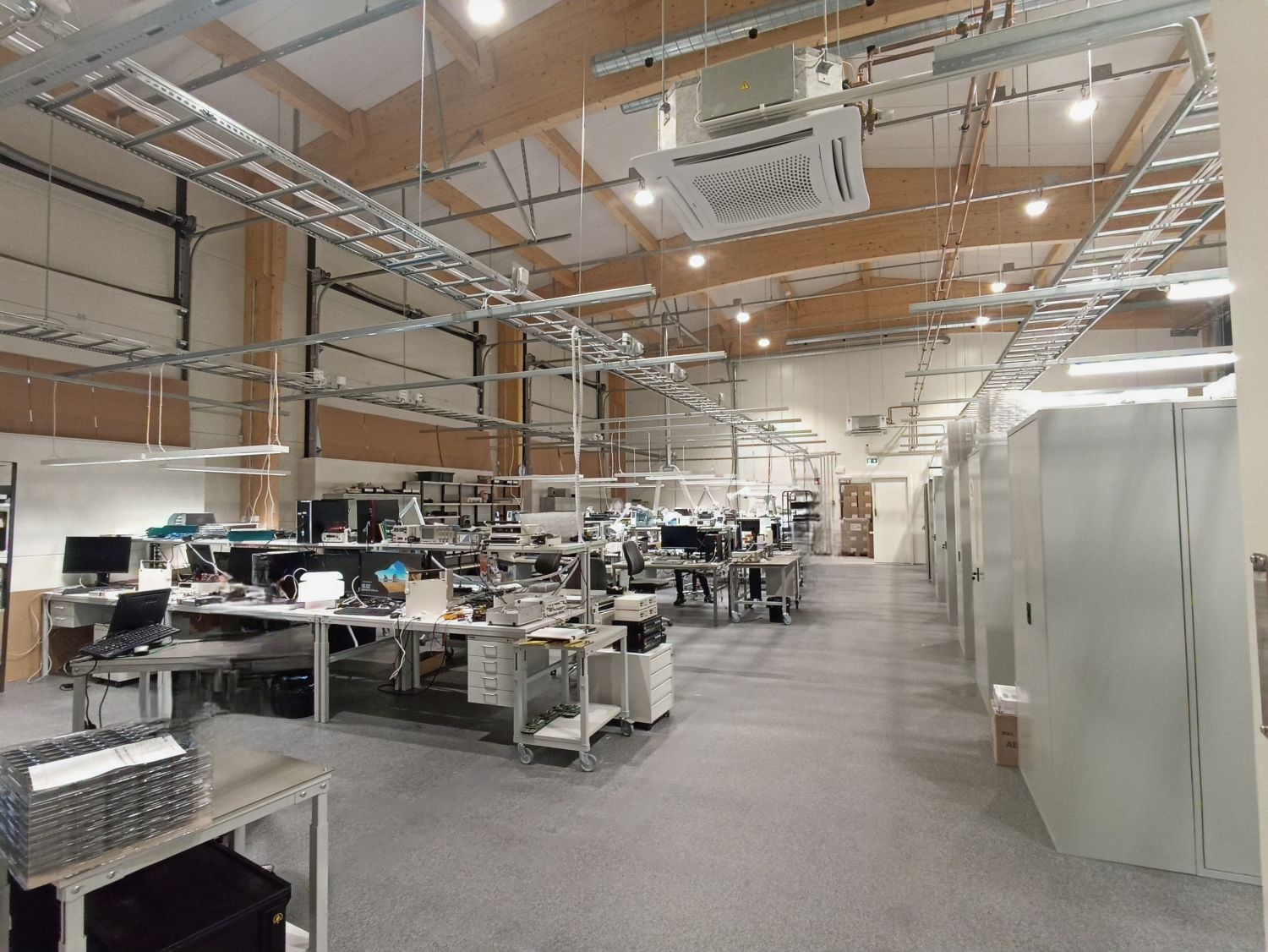 Hallitilan vapaa korkeus noin 5,3 - 5,8 metriä, nosto-ovia 5kpl, koko noin 4 x 4 metriä. Tuotantotiloissa ESD-epoksilattia. Öljynerotuskaivot ja LED-valaistus. Viilennys sekä hallissa että toimistossa.