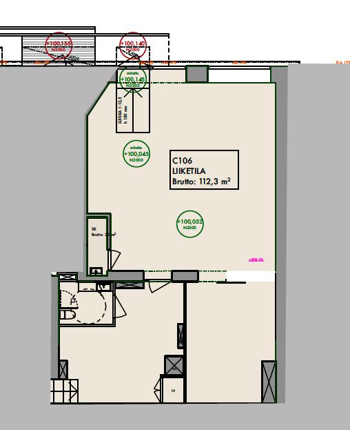 Tämä 112,5 m² liiketila sijaitsee kiinteistön katutasossa. Tilaan on sisäänkäynti suoraan kadulta. Tämä tila ei sovellu ravintola-, kahvila- tai parturi-kampaamotoimintaan, This premise is not suitable for a restaurant, cafeteria or a barber shop.