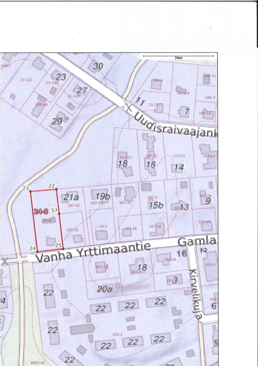 Loistosijainnilla puistoon rajoittuva 1583 m2 tontti, jossa rakennusoikeutta 396 k-m², josta käytetty 110 k-m² kaavan mukaan suojeltuun, huonokuntoiseen rakennukseen. Rakennusta ei saa purkaa ilman rakennuslautakunnan lupaa. AO = erillispientalojen korttelialue. Saa asemakaavaaan merkityn kerrosalan lisäksi rakentaa erillisiä talous- ja autosuojatiloja enintään 25 m²/asunto. Saa kerrosalasta enintään 60 % rakentaa yhteen kerrokseen.