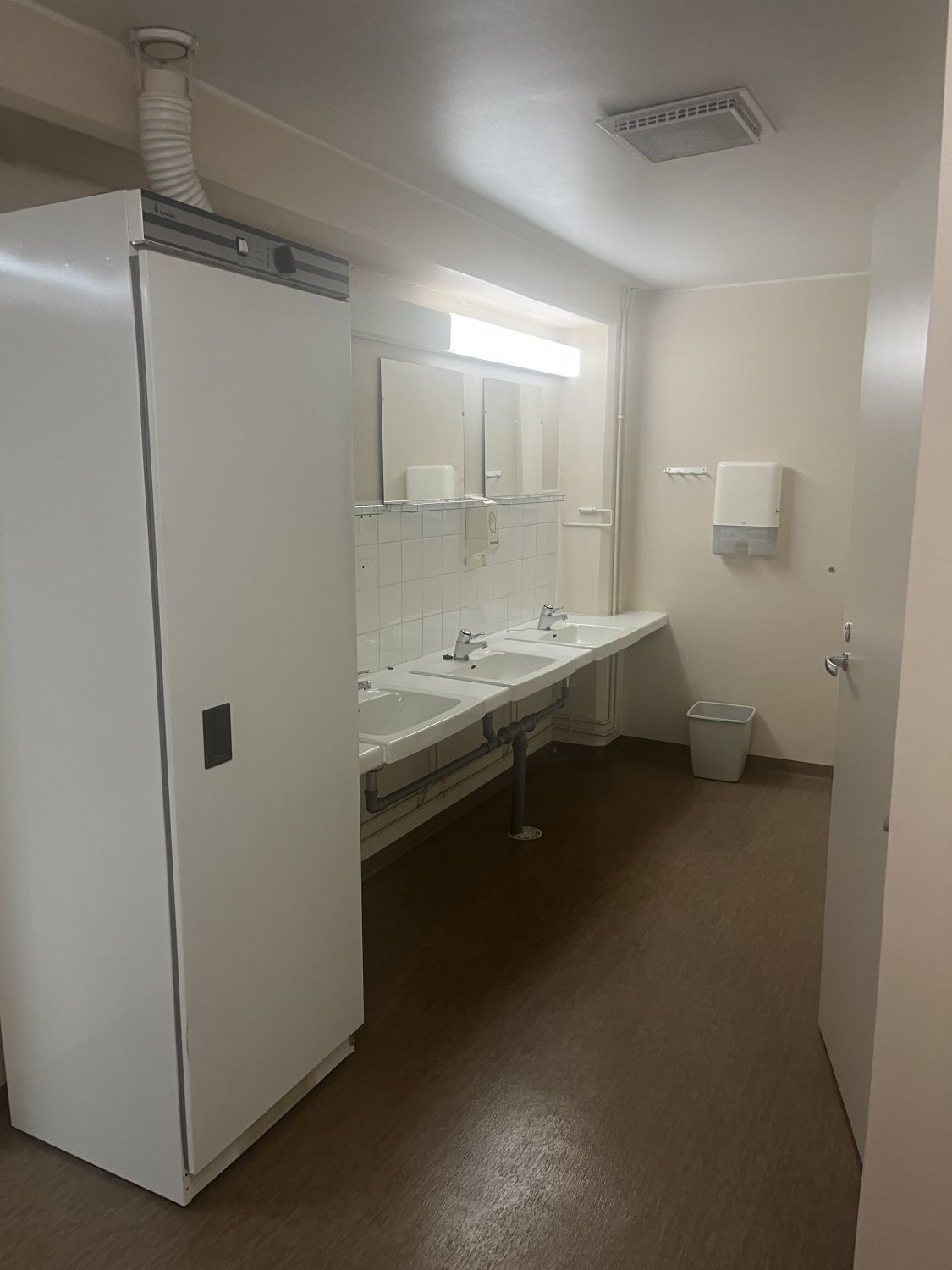 Lastauslaituri, paljon näyteikkunaa, suihku - wc ja pukuhuonetilat naisille ja miehille, keittiö, toimistohuoneita, 2kpl turvaholveja.