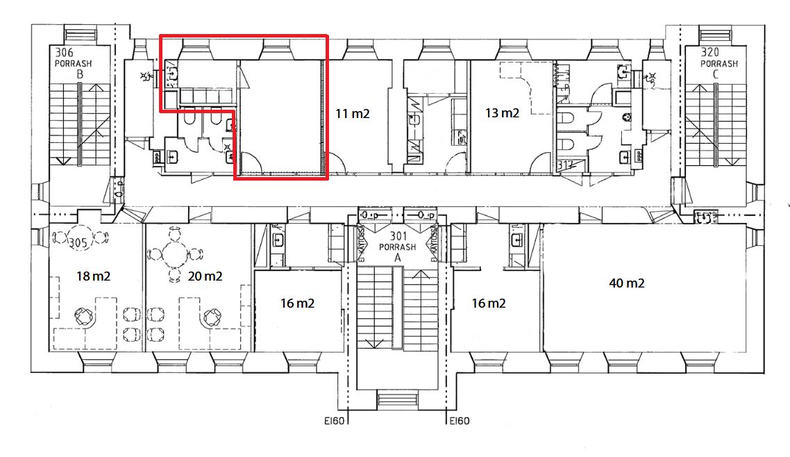 Tämä valoisa ja rauhallinen toimistotila sijaitsee Luutnantti-rakennuksen pientoimistoalueen 3. krs.