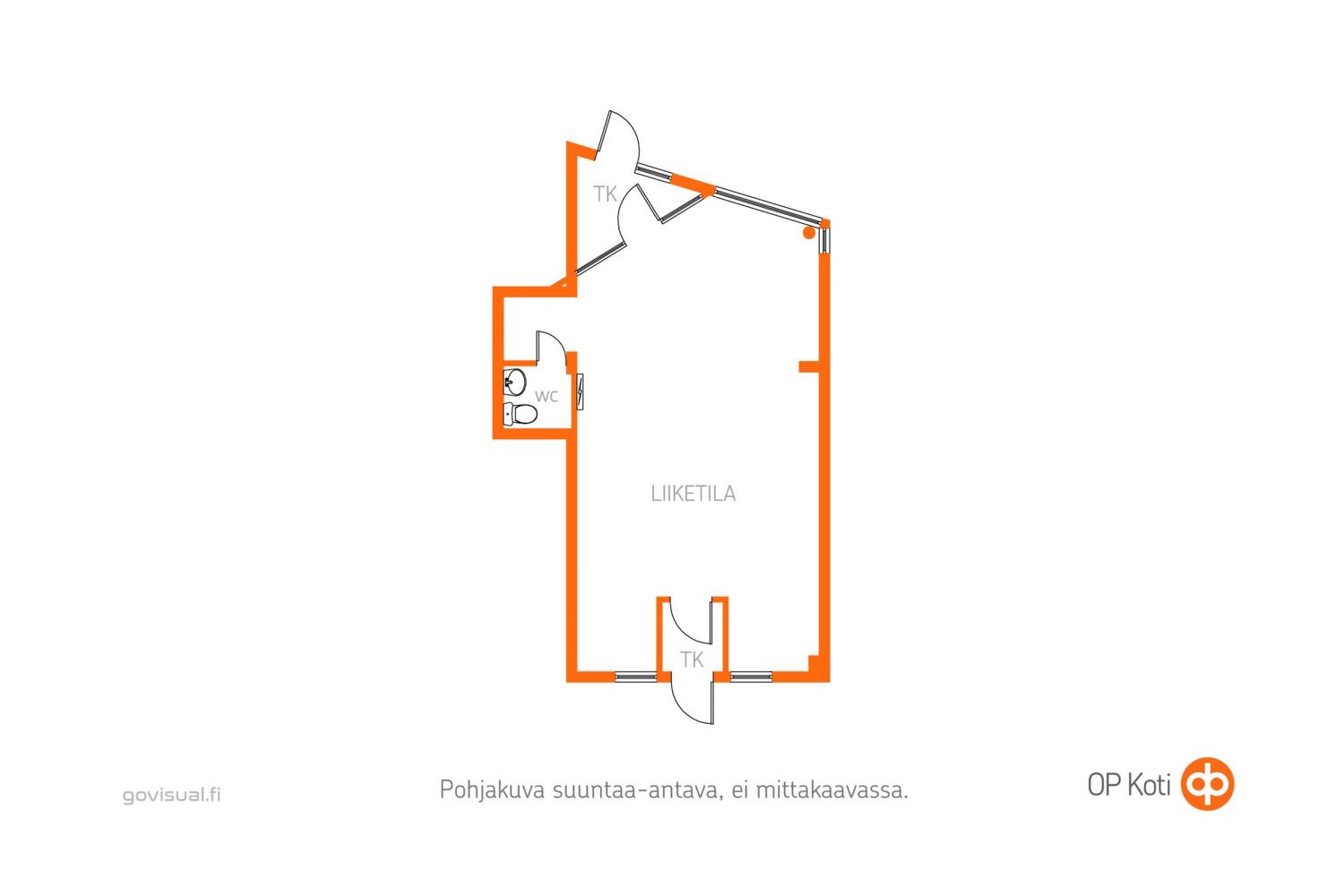 Loistavalla sijainnilla läpitalon liiketila kahdella sisäänkäynnillä. 53m2 tila on avara ja antaa mahdollisuudet moneen. Pieni apukeittiö ja wc.