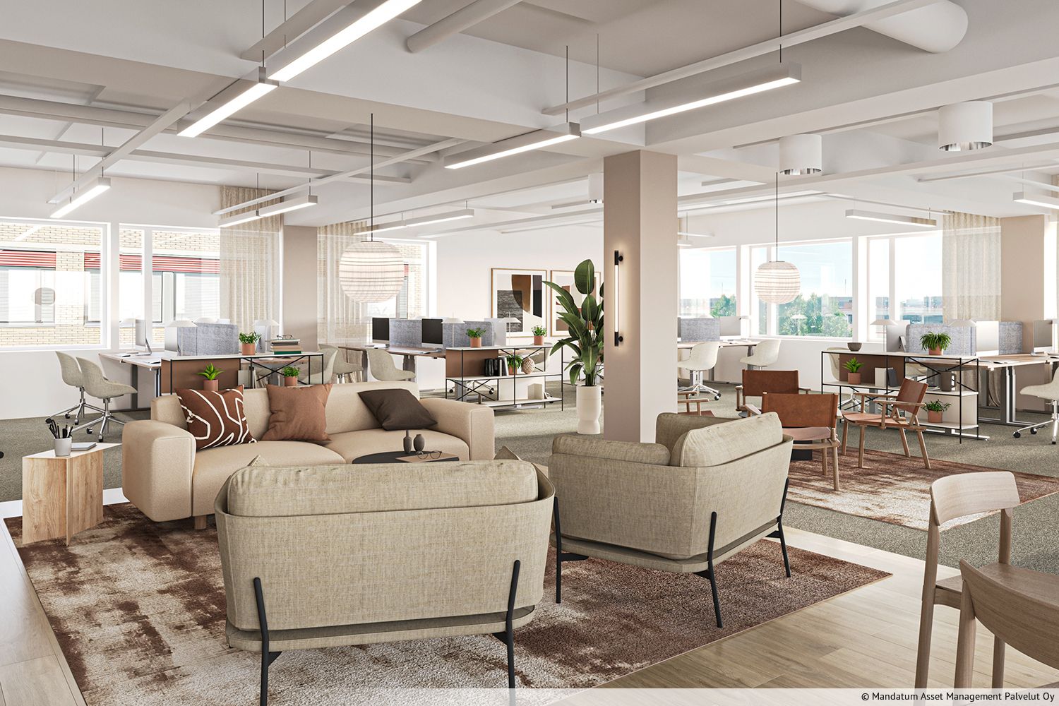 Muuntojoustava ja monien mahdollisuuksien toimitila vuokralla Helsingin Pitäjänmäessä. Tila koostuu työhuoneista sekä avotilasta. Tila on myös mahdollista yhdistää viereisten tilojen kanssa suuremmaksi kokonaisuudeksi. Tilaan on sujuva sisäänkäynti kiinteistön pääaulasta ja yhteys myös talon lastauslaiturille. Atomitie 5:lle suunnitellut, kiinteistön arkkitehtuuria ja identiteettiä heijastavat upeat sisustusteemat ovat avuksi toimitilan tilasuunnittelussa. Kysy tarkempia tietoja vuokrauksesta ja sisustusteemoista!