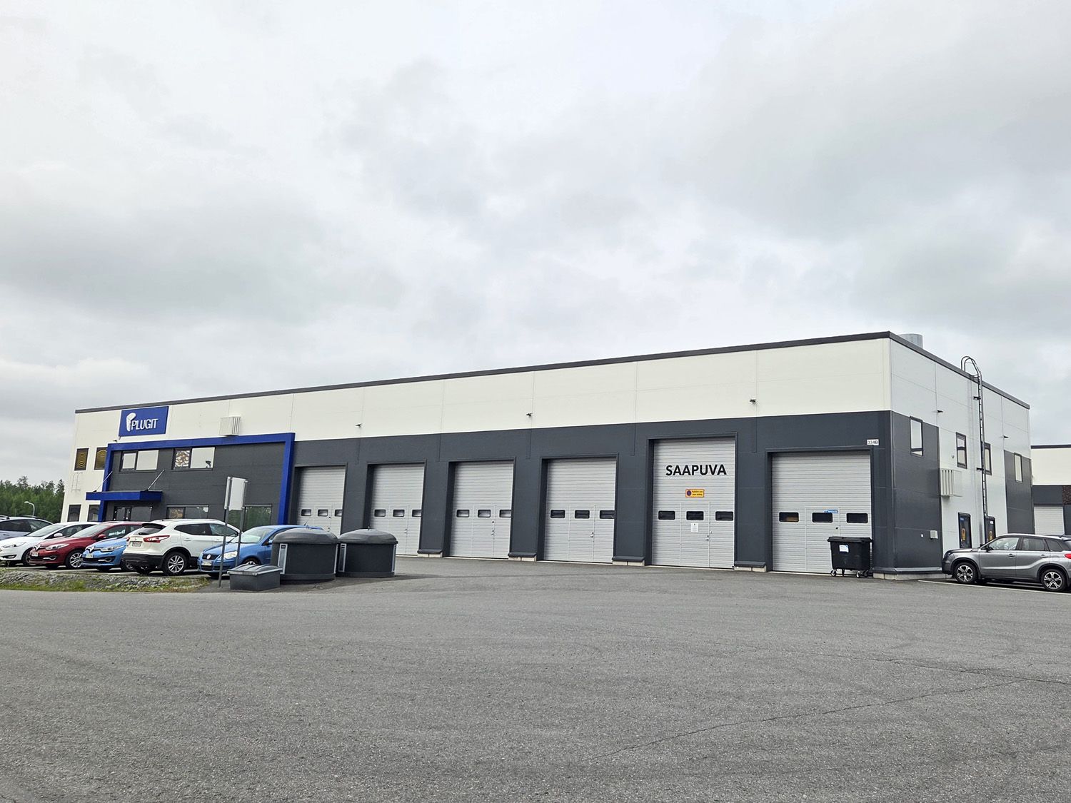 Useita nosto-ovia maanpinnan tasossa.