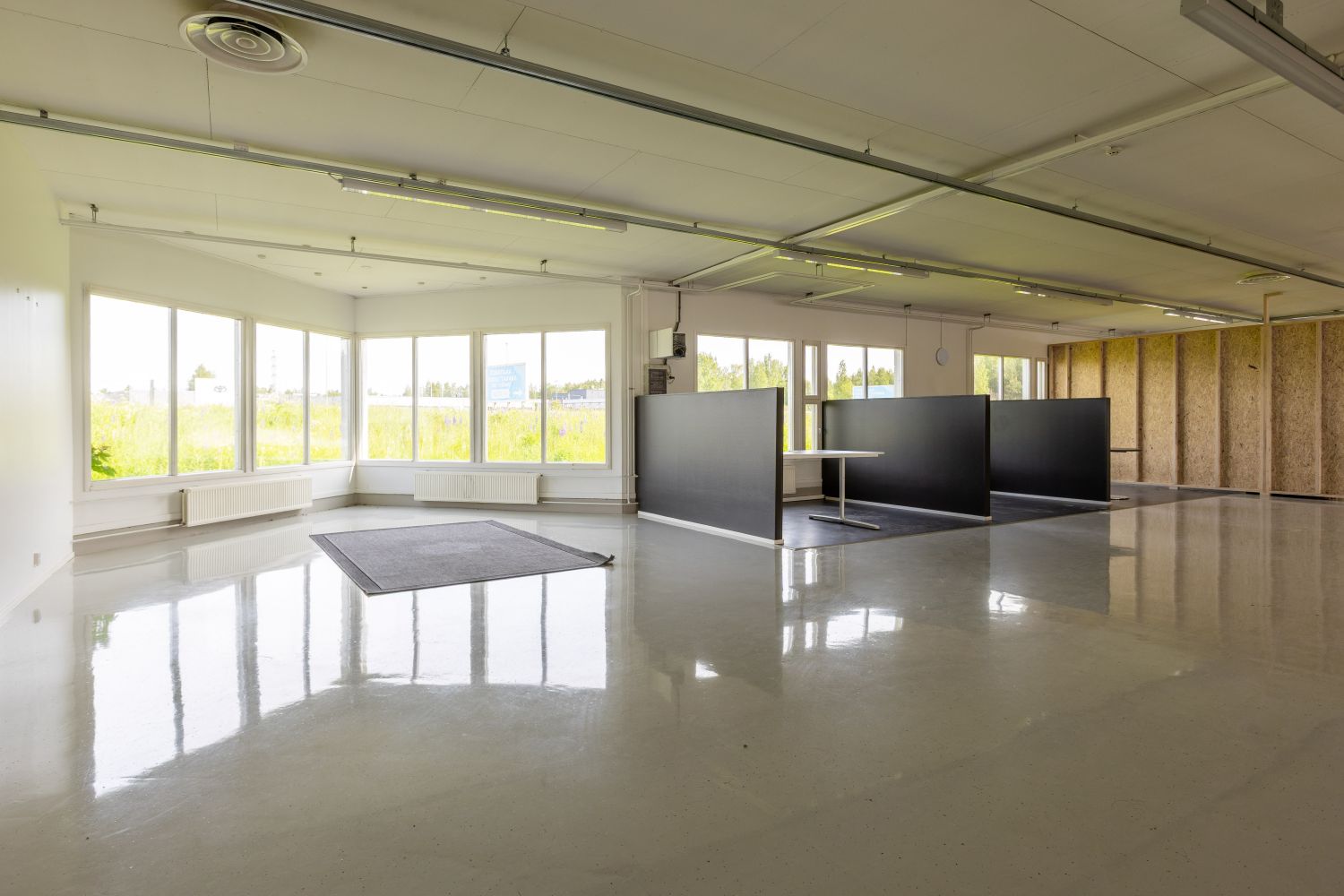 - Tilava neuvotteluhuone, erillinen toimistotila, keittiö ja ruokailutila, suihkut, wc