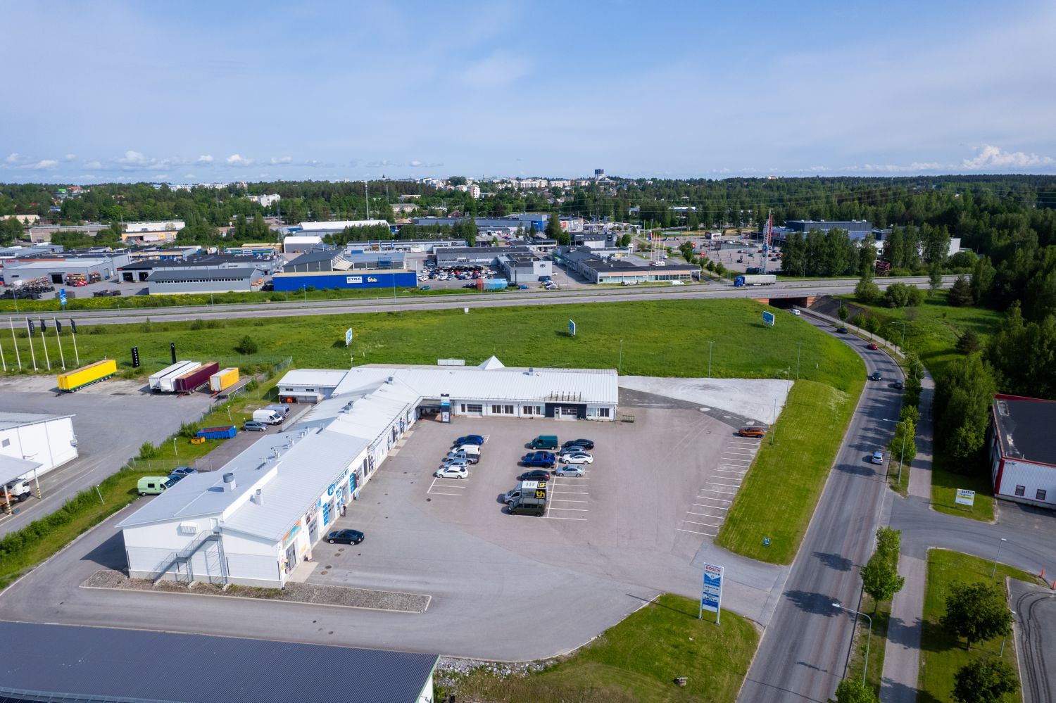 Tämä tila soveltuu niin myymälätilaksi, toimistotilaksi kuin moneen muuhunkin. Helppo saavutettavuus ja nykyaikaiset tilat takaavat toimivat puitteet yrityksesi menestymiseen. Samassa rakennuksessa toimivat K1-Katsastajat, AS-huolto ja Pesuparkki.