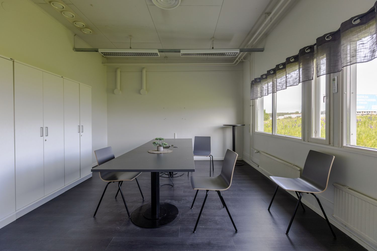 - Tilava neuvotteluhuone, erillinen toimistotila, keittiö ja ruokailutila, suihkut, wc