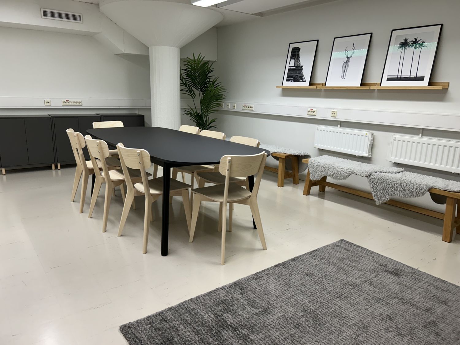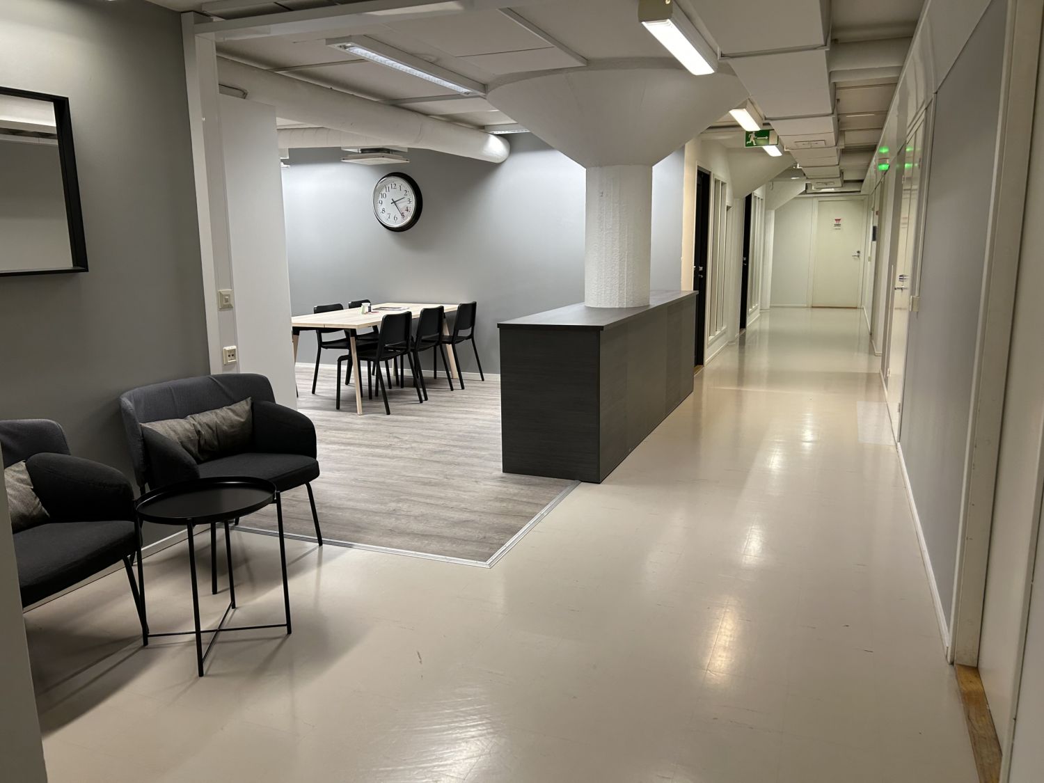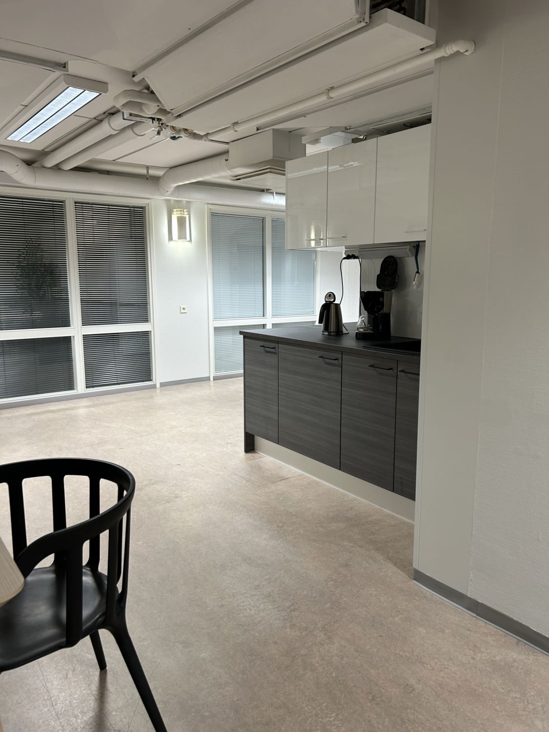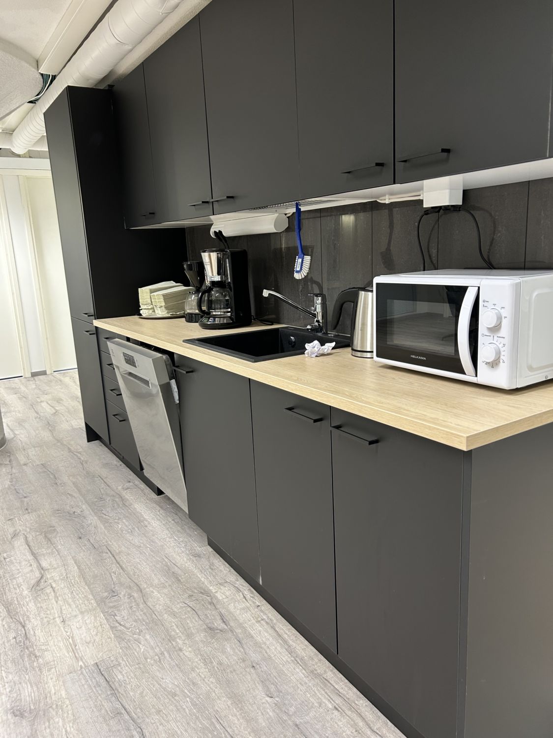 Täysin uusittu ja nykyaikainen keittiö, neuvottelutila ja wc-tilat yhteiskäytössä.