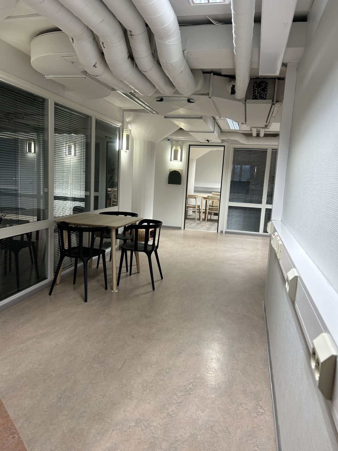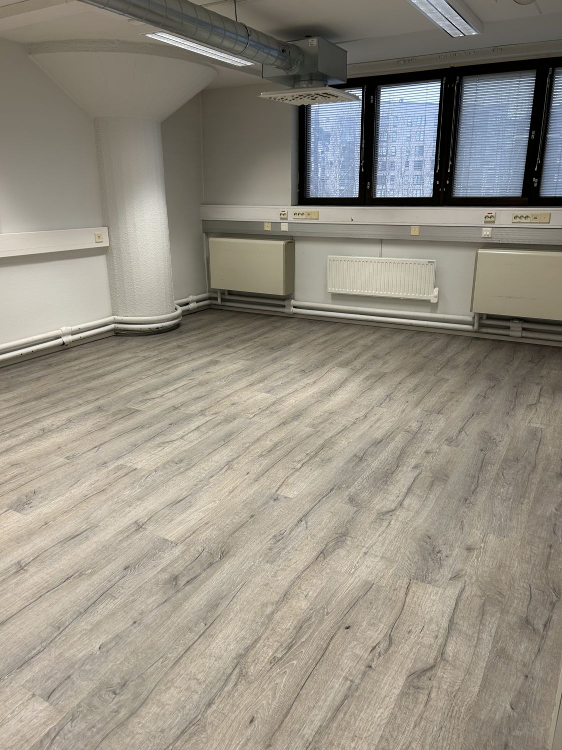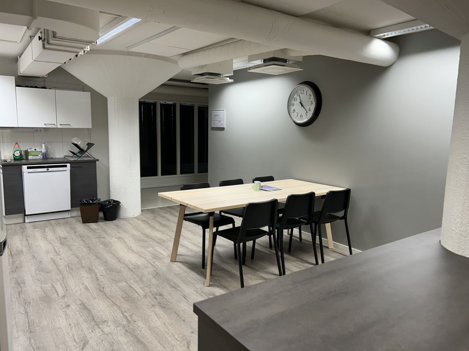 Täysin uusittu ja nykyaikainen keittiö, neuvottelutila ja wc-tilat yhteiskäytössä.