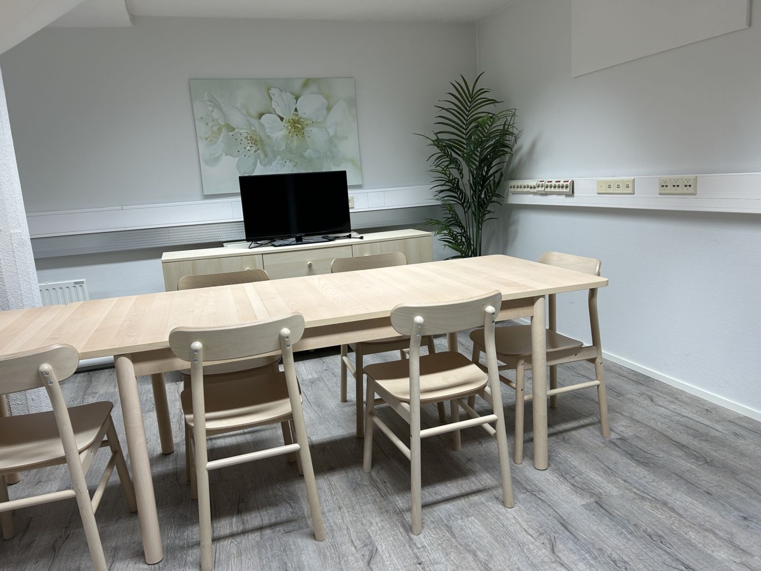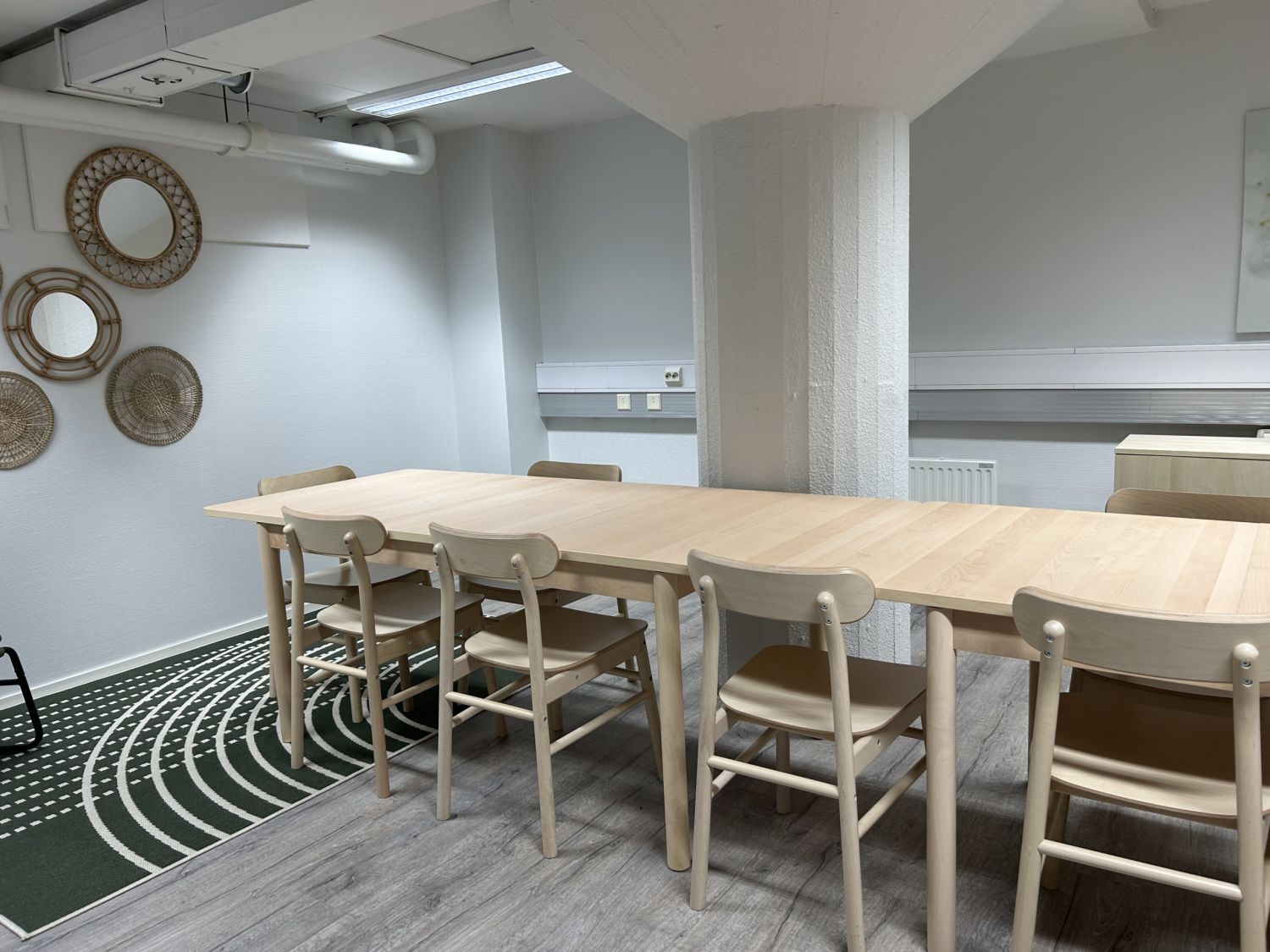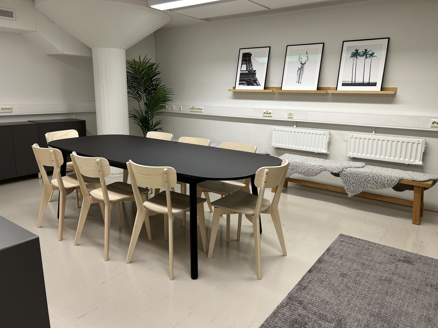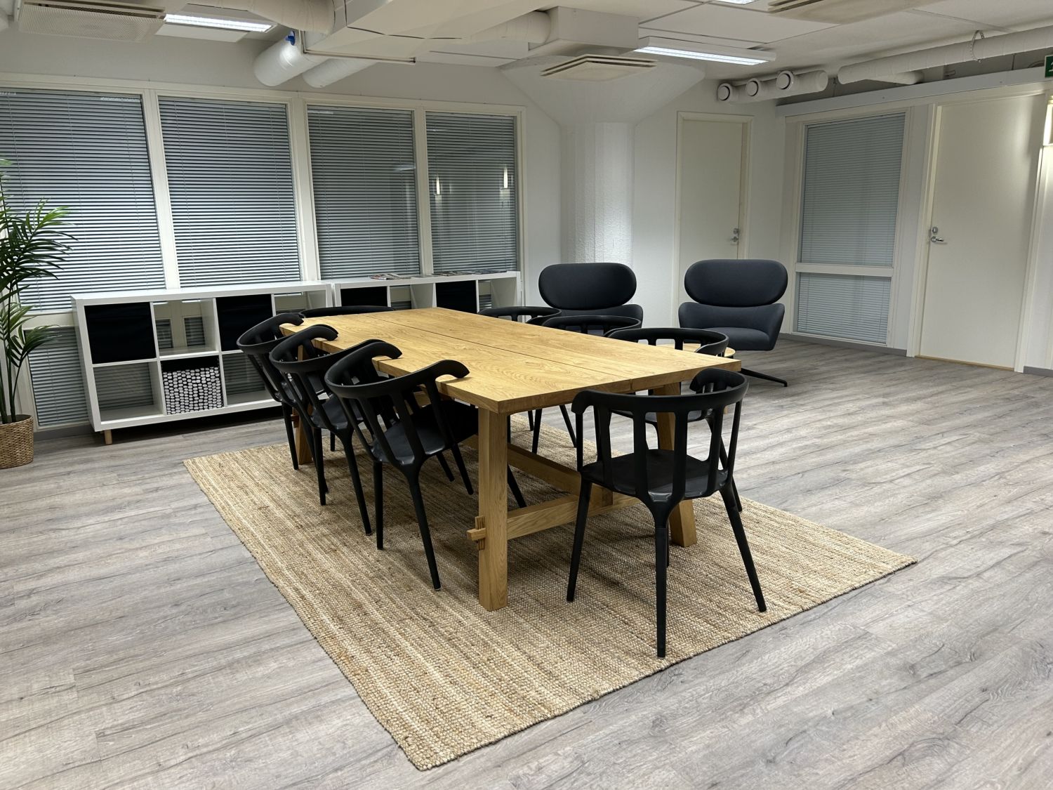Täysin uusittu ja nykyaikainen keittiö, neuvottelutila ja wc-tilat yhteiskäytössä.