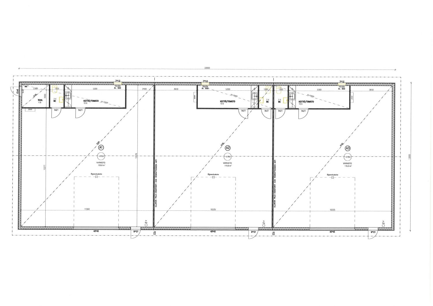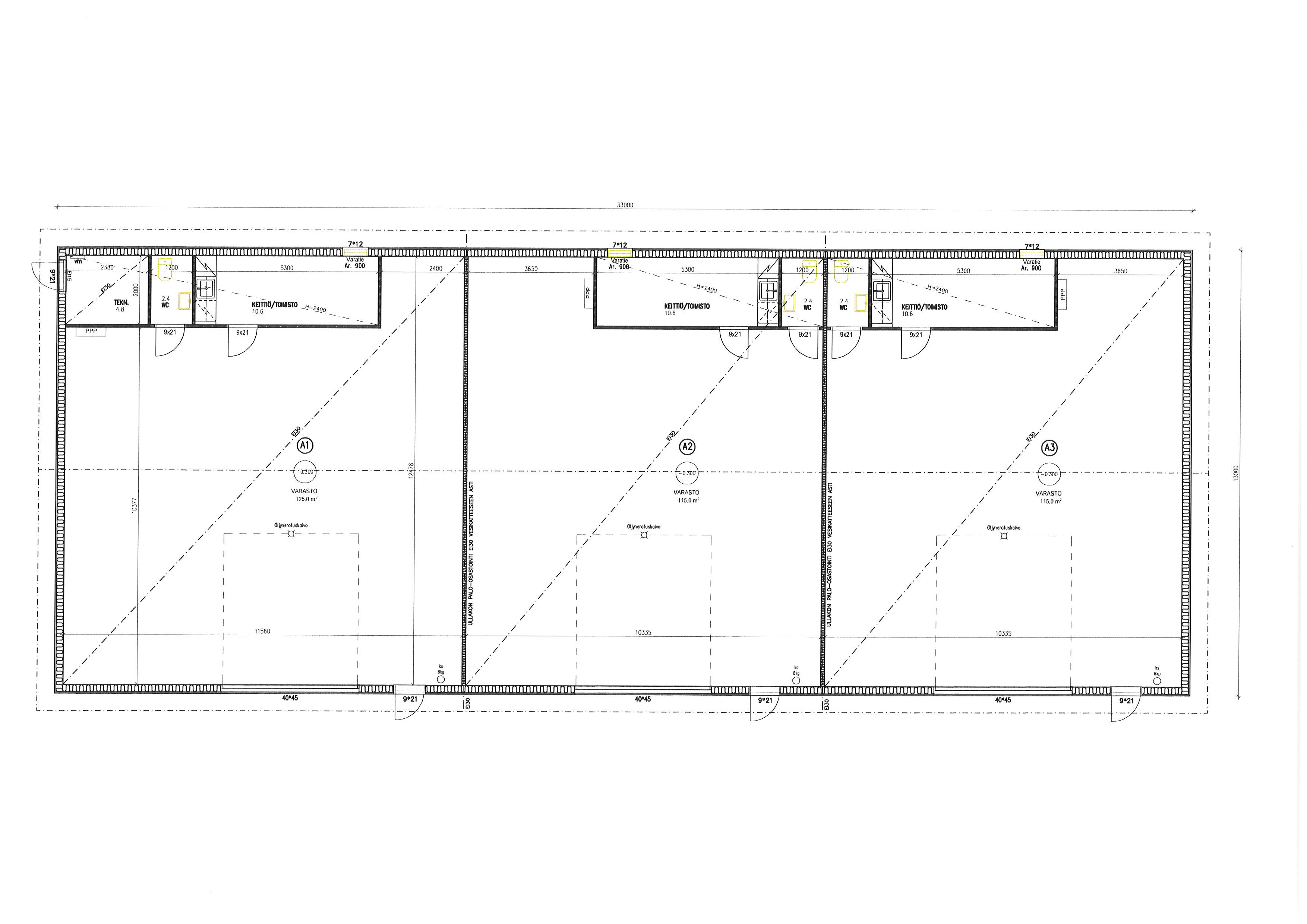Halli A1 138m², hallit A2 ja A3 128m²/kpl