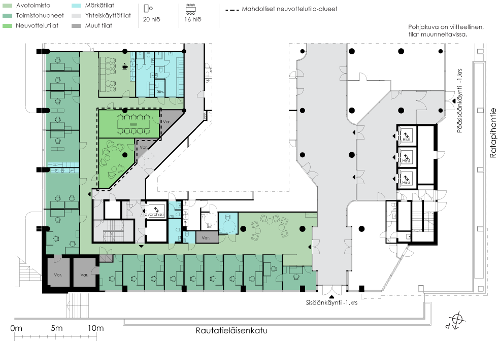 Siistiä toimistotilaa Pasilan parhaalta paikalta. Käynti katutasosta Ratapihantien puolelta.