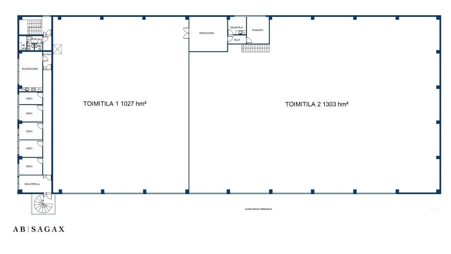 Tällä hetkellä vapaana on 2 331 m² tila rakennuksen 1. kerroksessa. Tilat ovat tarvittaessa jaettavissa pienempiin yksiköihin asiakkaan tarpeiden mukaan.