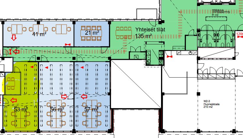 Vuokrattavana toimistotila ( 53 m2 ). Toimisto sijaitsee 2.kerroksessa ja siinä on avotilan lisäksi hiljaisen työskentelyn/neuvotteluhuone. .Yhteiskäyttöiset sosiaalitilat Kohteessa on aulapalvelu, edustustilat ja sauna, lounasravintola, kuntosali.