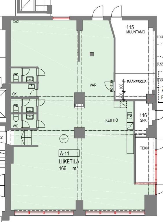 Tämä 166 m² liiketila sijaitsee kiinteistön 1. kerroksessa. Tila on avonainen, ja siihen kuuluvat omat wc- ja keittiötilat. Tila on erittäin tyylikäs ja hyvässä kunnossa. Soveltuu myös toimistokäyttöön. Kuvat ovat yleiskuvia kiinteistön tiloista.