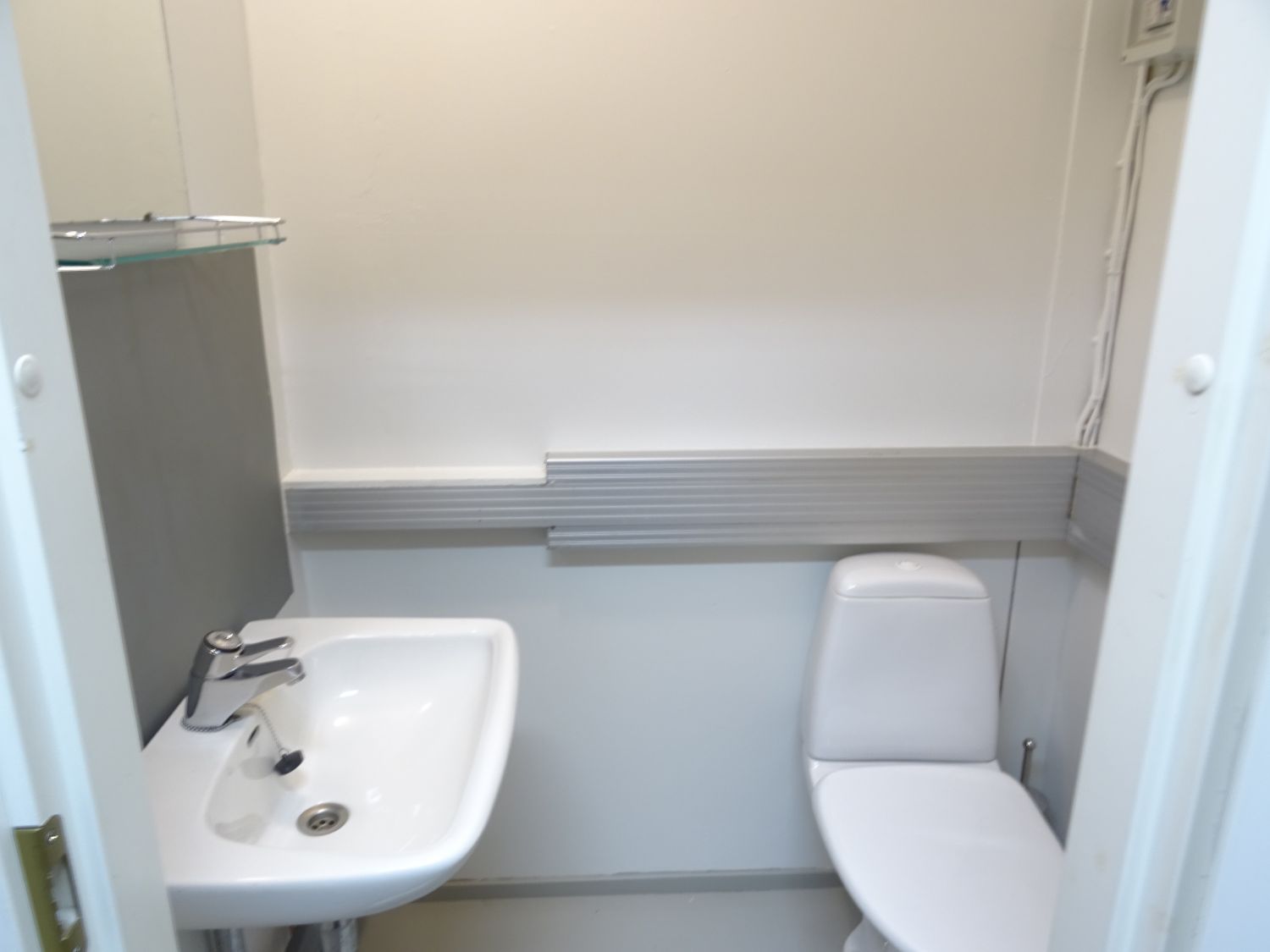 Hallissa rakennettuna erillinen pesupaikka ja lisäksi toimisto-osio, jonka yhteydessä minikeittiö ja 2 vessaa. Hallin tilaa on jaettu väliseinällä, jossa ovi toiselle puolelle. Tilaan asennettu ilmalämpöpumppu, joka lämmittää tai jäähdyttää, tarpeen mukaan.