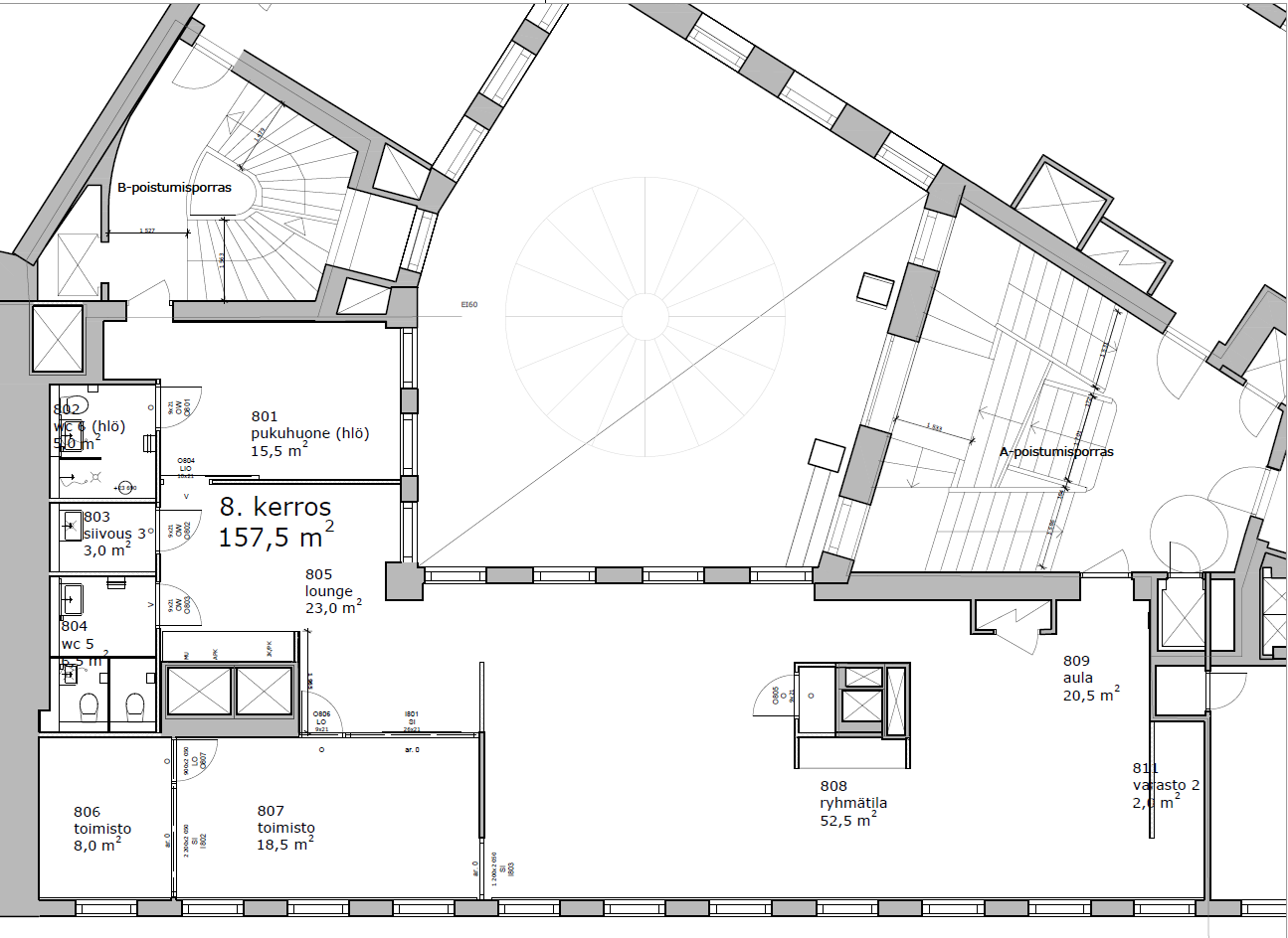 Näyttävä, 8. kerroksen tilava 157,5 m² toimisto Kaisaniemessä