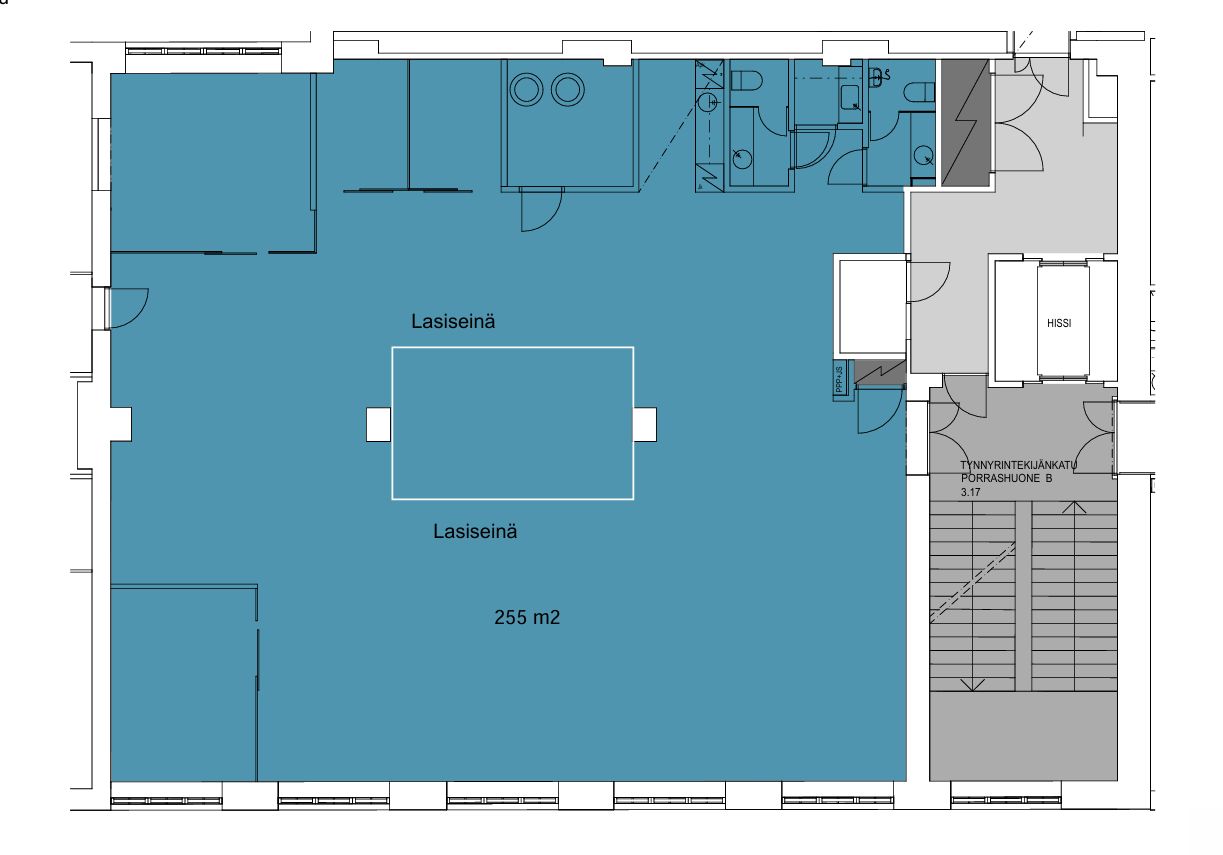 Vuokrattavana 3. kerroksen korkea, muuttovalmista toimistotilaa, jossa on useita huoneita sekä avotilaa.