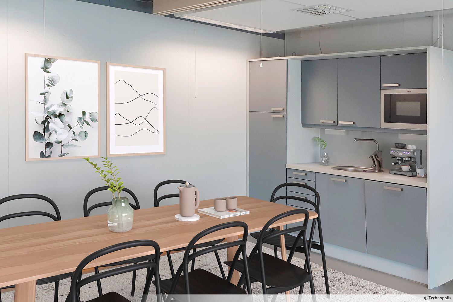 Tila on mahdollista vuokrata myös kalustettuna. Saatavilla ovat lisäksi työtilan suunnittelu- ja muuttopalvelut. Ota yhteyttä ja tule tutustumaan paikan päälle.