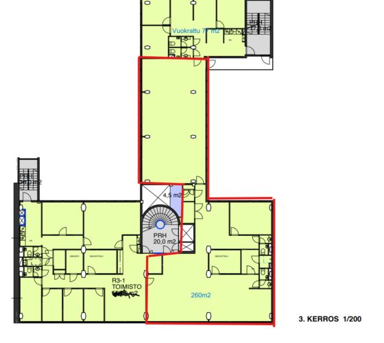 Vapaana 260 m2 toimistotilaa neljännestä kerroksesta.
