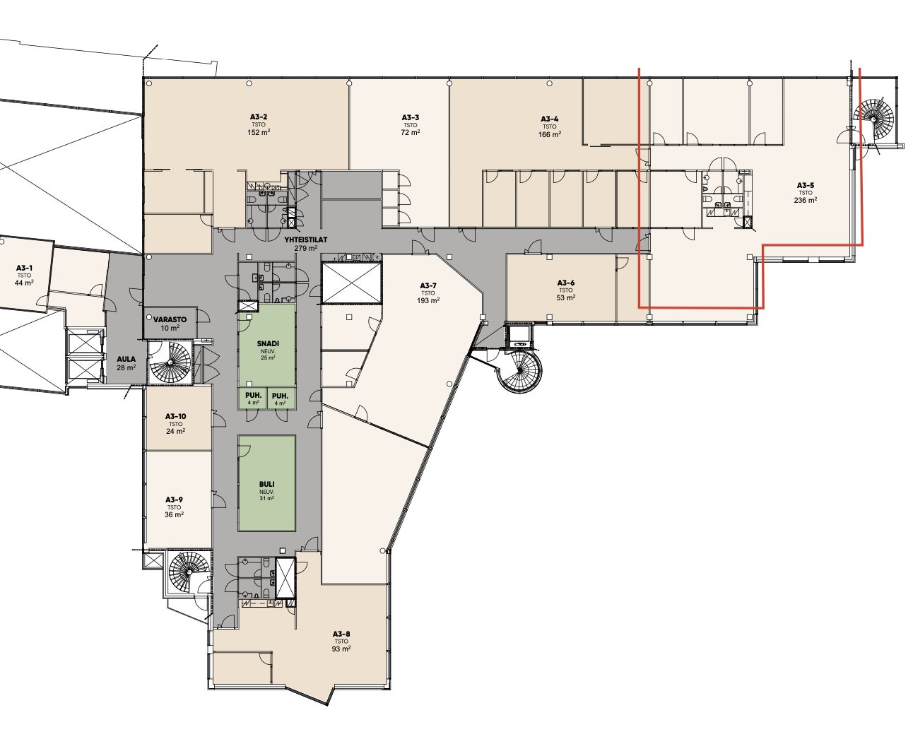 Toimistokiinteistö on remontoitu vuonna 2021, jolloin palvelut ja tilat päivitettiin tämän päivän tarpeita vastaaviksi. A-talon yleiset tilat tullaan remontoimaan syksyn 2022 aikana.