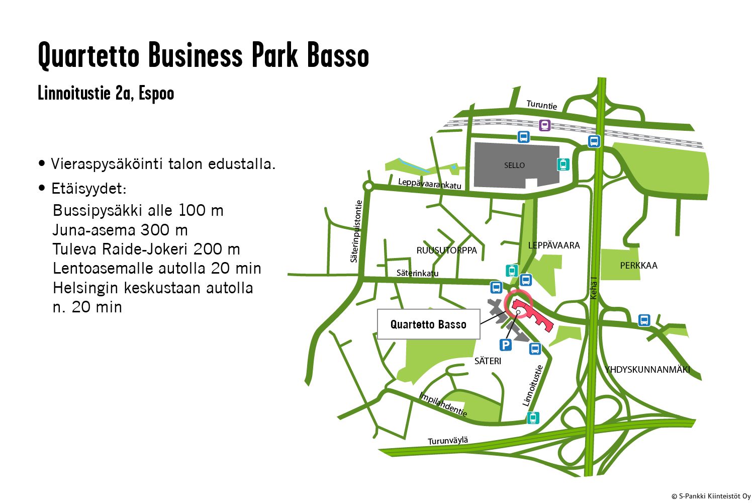 S-Pankki Kiinteistöt Oy hallinnoi, johtaa ja kehittää ammattitaidolla merkittävää kiinteistövarallisuutta Suomessa. Kiinteistöt pitävät sisällään toimisto-, varasto-, tuotanto- ja liiketilaa.