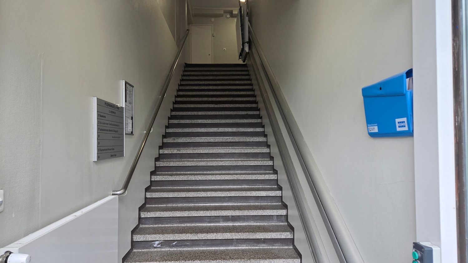 Tila sijaitsee rakennuksen toisessa kerroksessa. Talossa ei ole hissiä, mutta portaikkoon on asennettu tuolihissi.