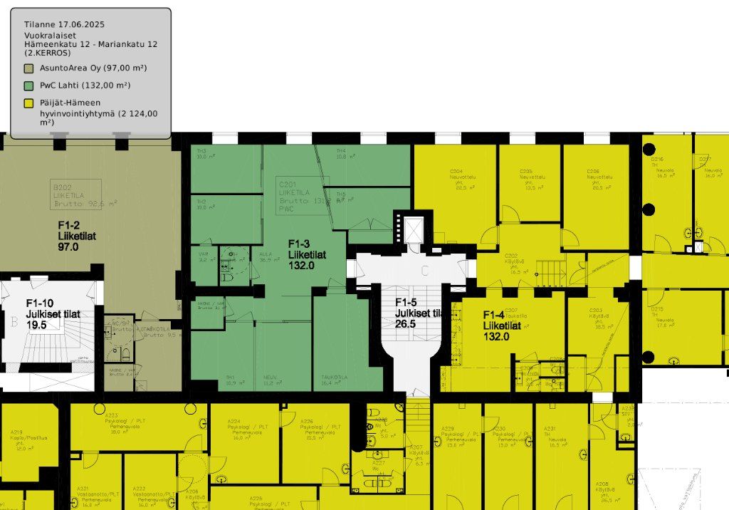 Vuokrattavana 132 m² 2. kerroksen toimistotila Lahdessa erinomaisella sijainnilla.