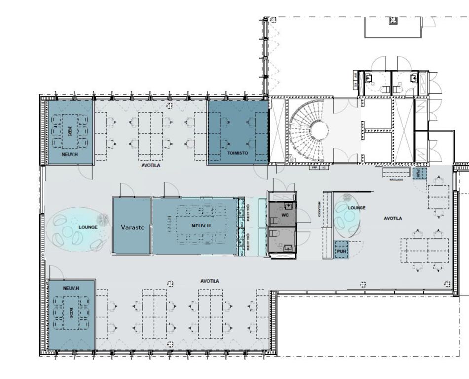 Kyseinen toimisto on kooltaan 706 m², ja se sijaitsee kiinteistön 2. kerroksessa. Tilassa on avotilaa, työ- ja neuvotteluhuoneita sekä omat wc- ja keittiötilat. Tilaan on esteetön kulku. Toimisto on mahdollista jakaa kahdelle käyttäjälle 334 m² ja 371,5 m² kokoisiin osiin.
