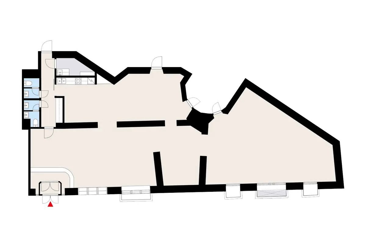 Vuokrataan kivijalan 189 m² liiketila arvokiinteistöstä Ullanlinnasta. Tila käsittää etualalla olevan liiketilan sekä takatilat, jotka ovat toimineet toimistona ja varastona.