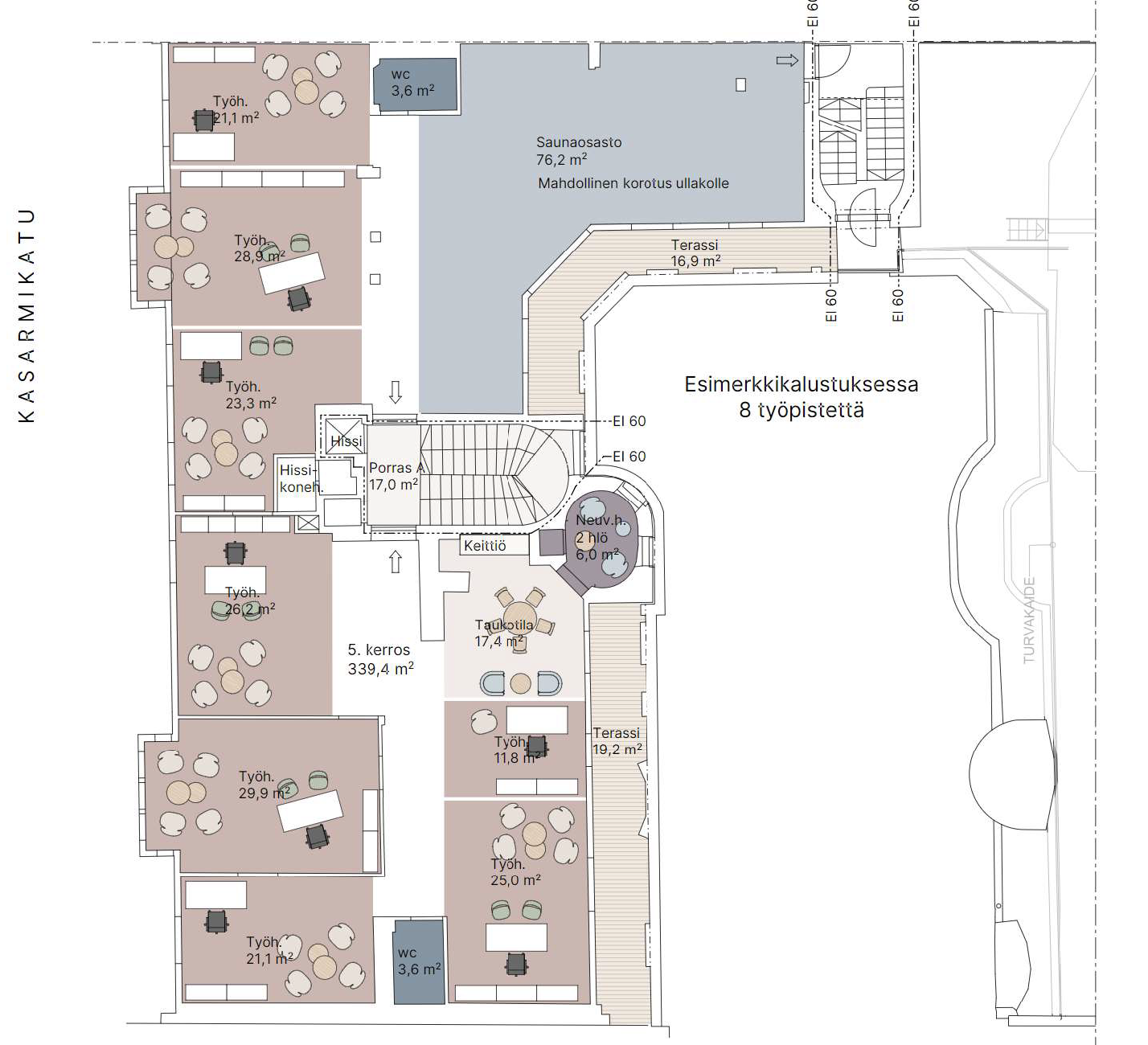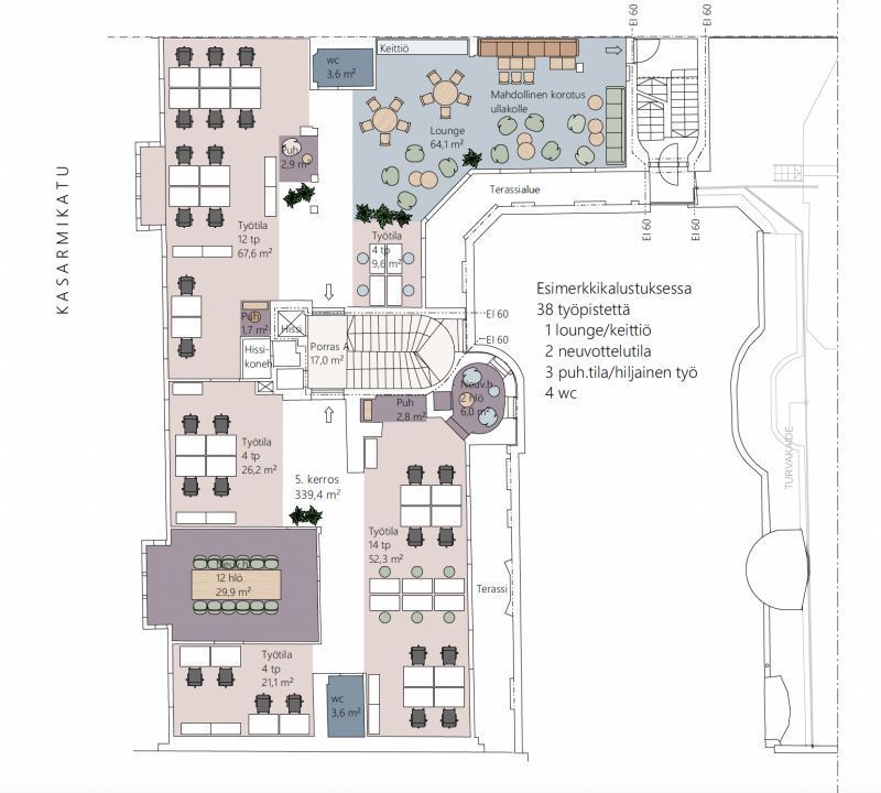 Upea ylimmän kerroksen 339 m² toimistotila terassilla ja upealla kattokorkeudella!